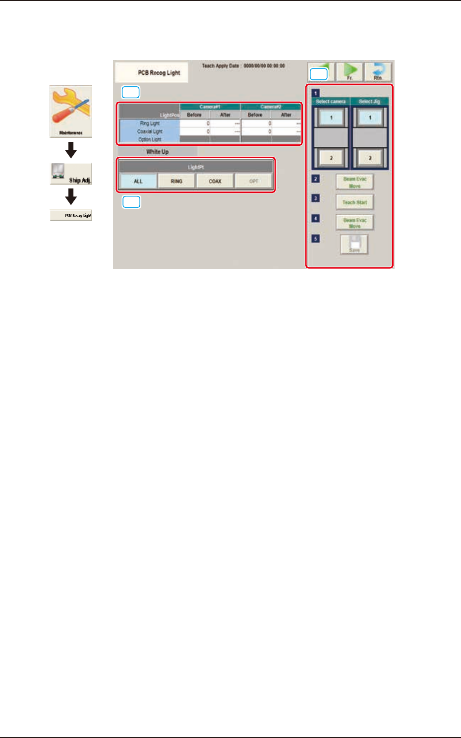 (3) Open the cover and set-up the teaching jig for the component recognition camera lighting