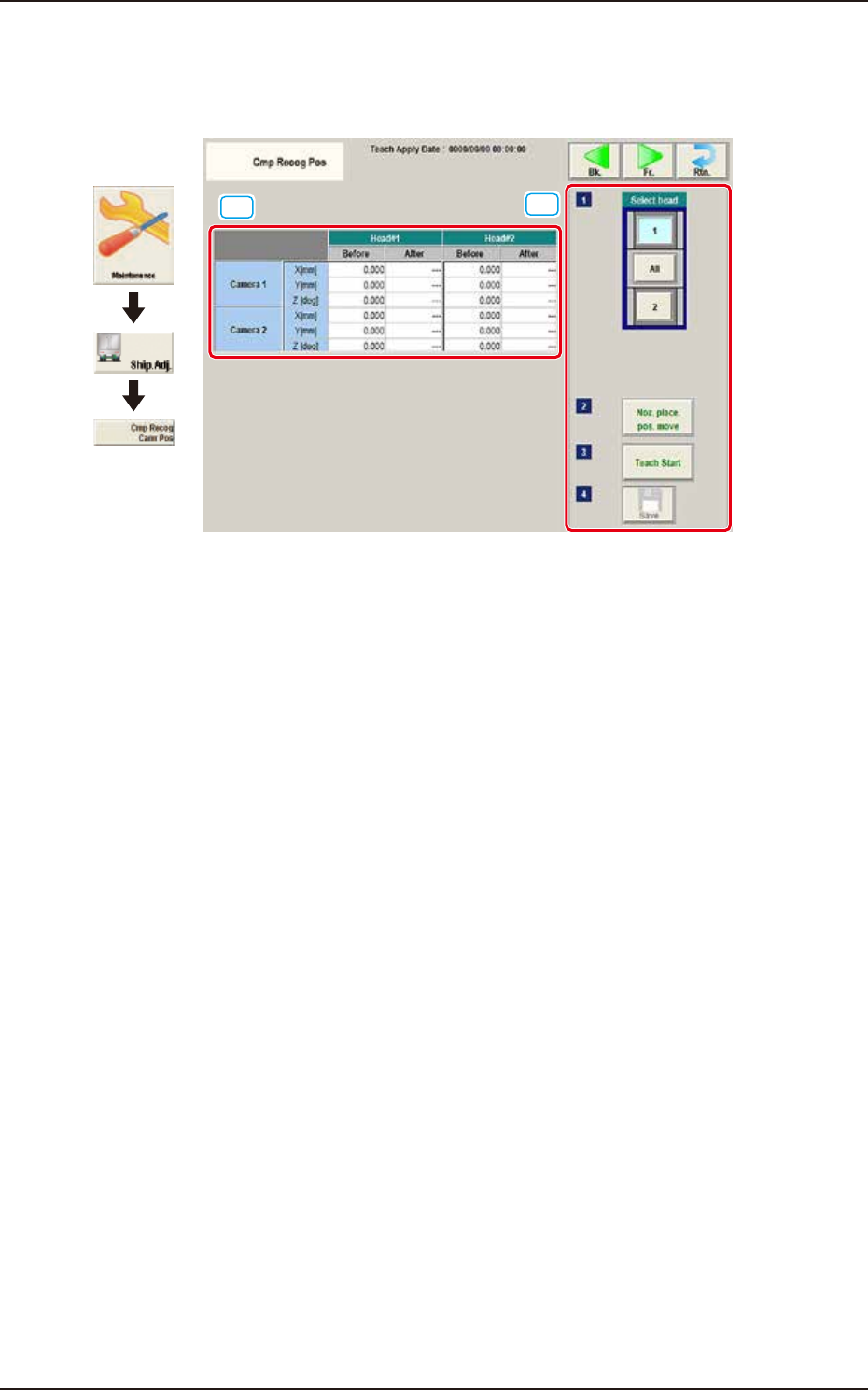 (3) Press the [Teach Start] button. (The component recognition camera offset (X (Horizontal), Y