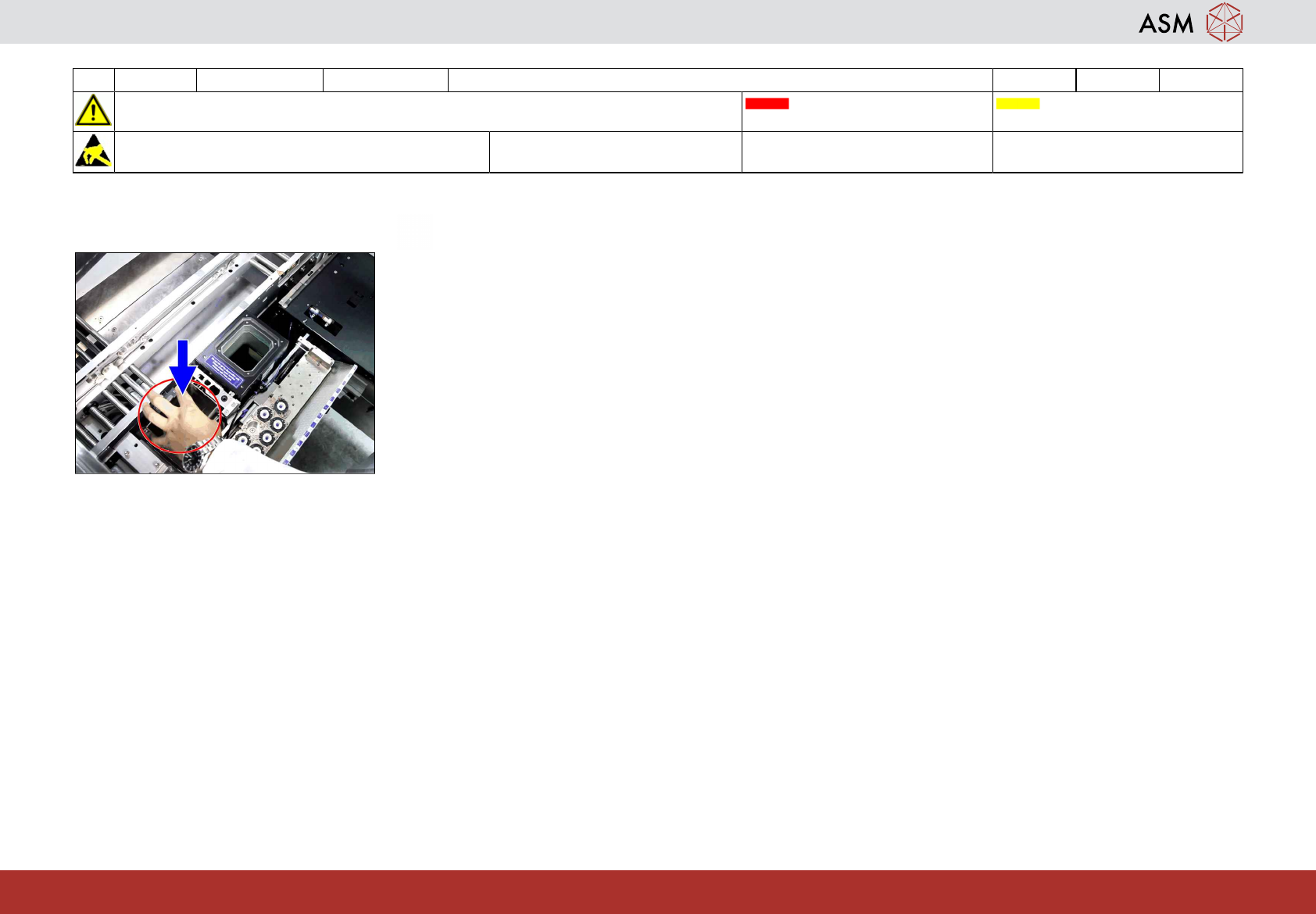 NOTICE! ESD guidelines are to be followed Tool: Wear Part: Consumables: