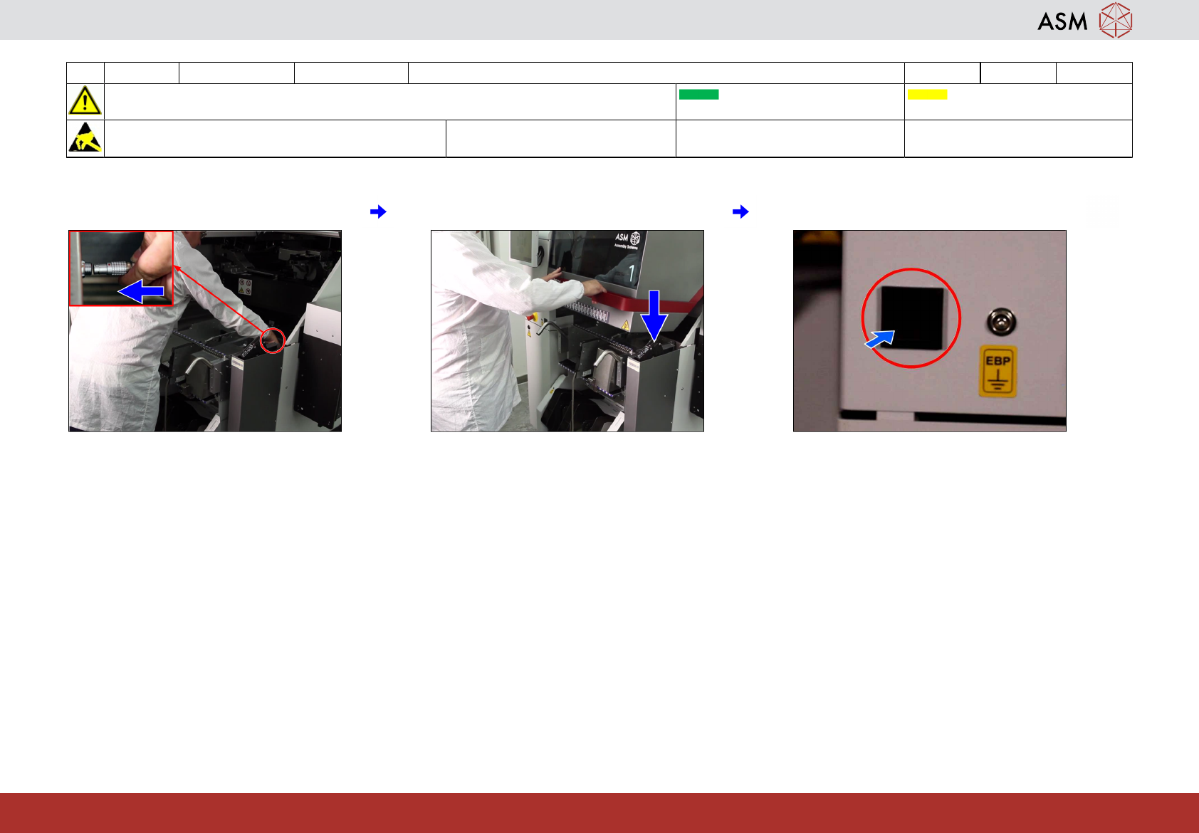 NOTICE! ESD guidelines are to be followed Tool: Wear Part: Consumables: