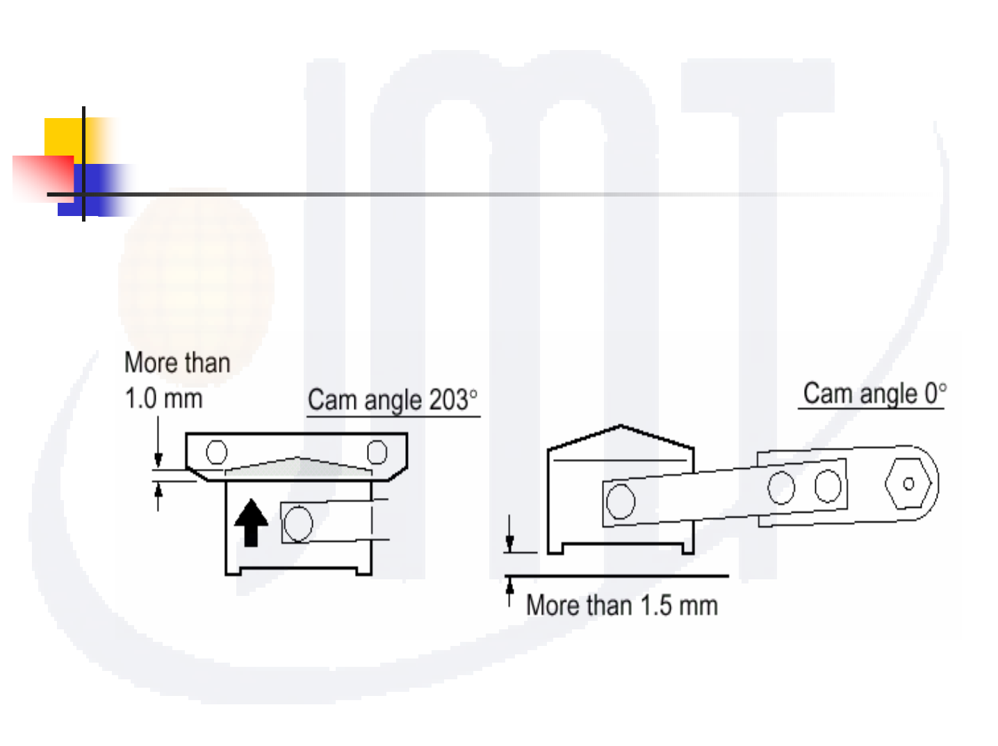 25 捌 、 1st/11st NOZZLE UP/DOWN LIMIT SENSOR 1. CAM 0/200 度 ,架設 量 表歸 零 。 2. 轉動CAM-AXIS,當SENSOR由ON變成OFF時, 量 表是否 移動 0.3~0.4mm 。 3. 如否,調整SENSOR前/後位置,直到符合標準。