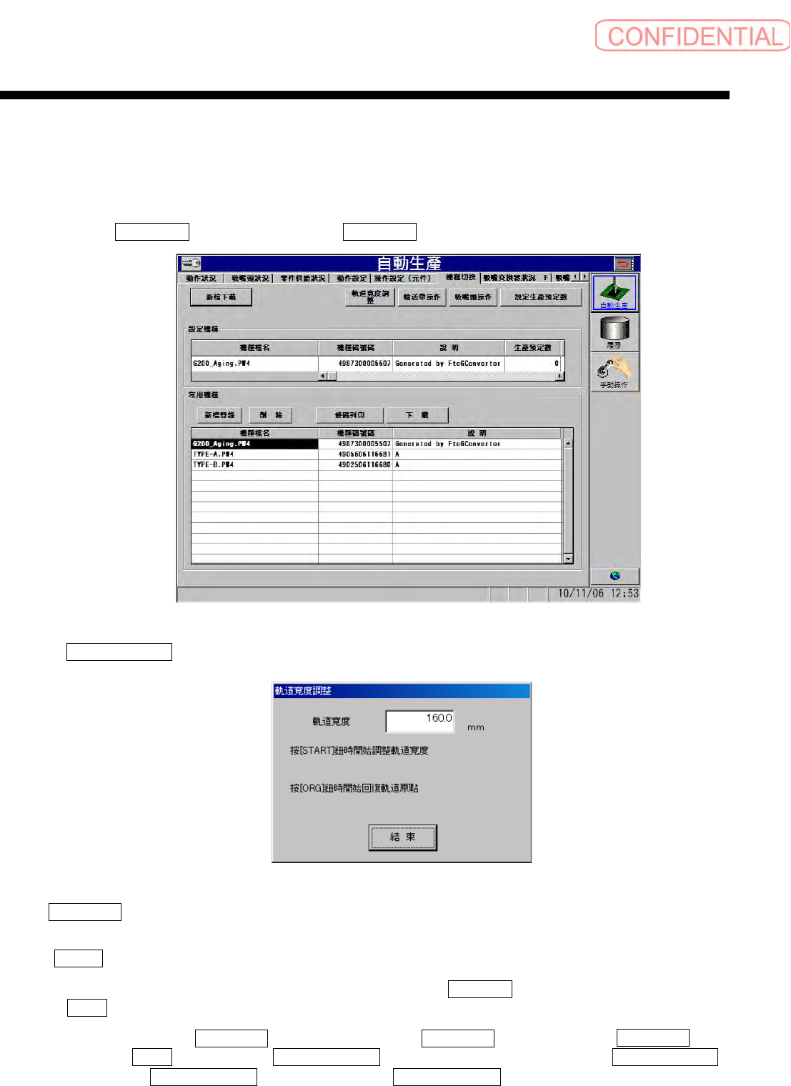 依顺序点击 自動生產 ( 自动生产 ) 菜单→ 機種切換 ( 机种切换 ) 标签会出现以下的画面。