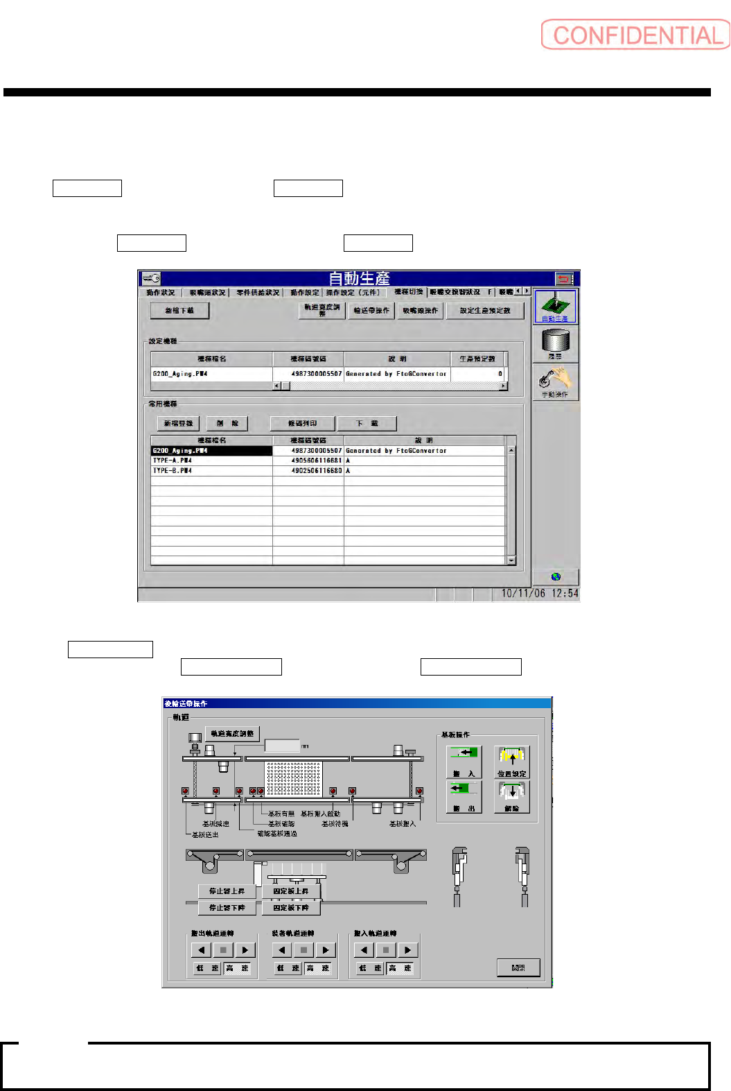 前輸送帶操作 (前输送带操作)、後輸送帶操作 (后输送带操作)。