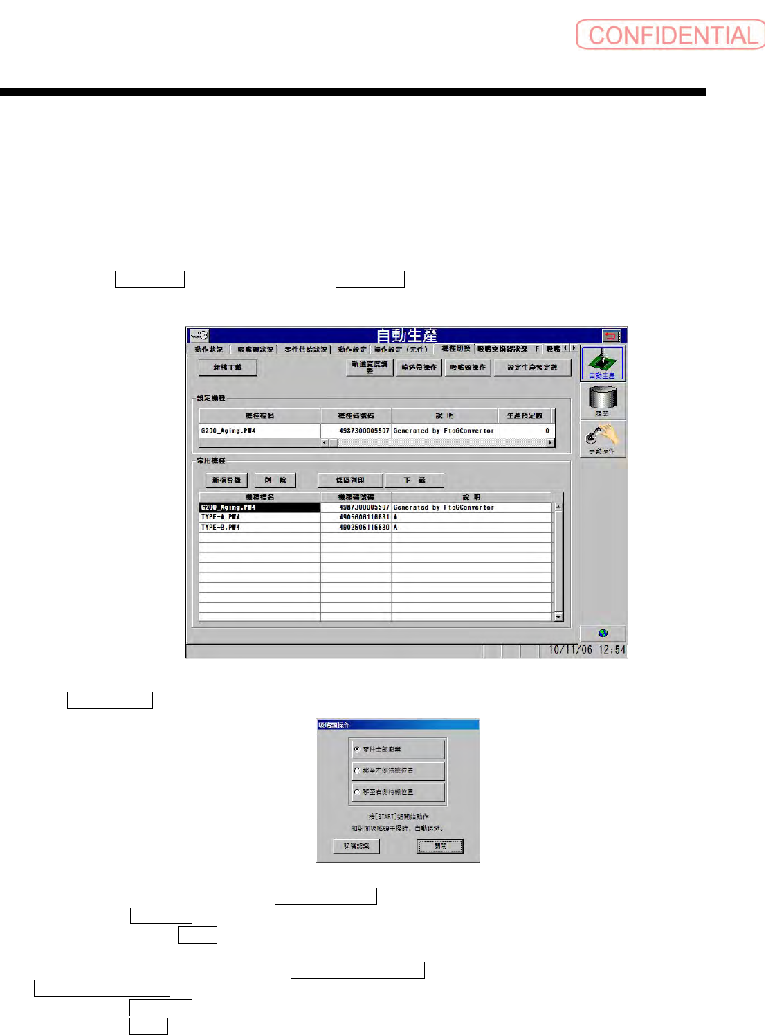 依顺序点击 自動生產 ( 自动生产 ) 菜单→ 機種切換 ( 机种切换 ) 标签,会出现以下的画面。