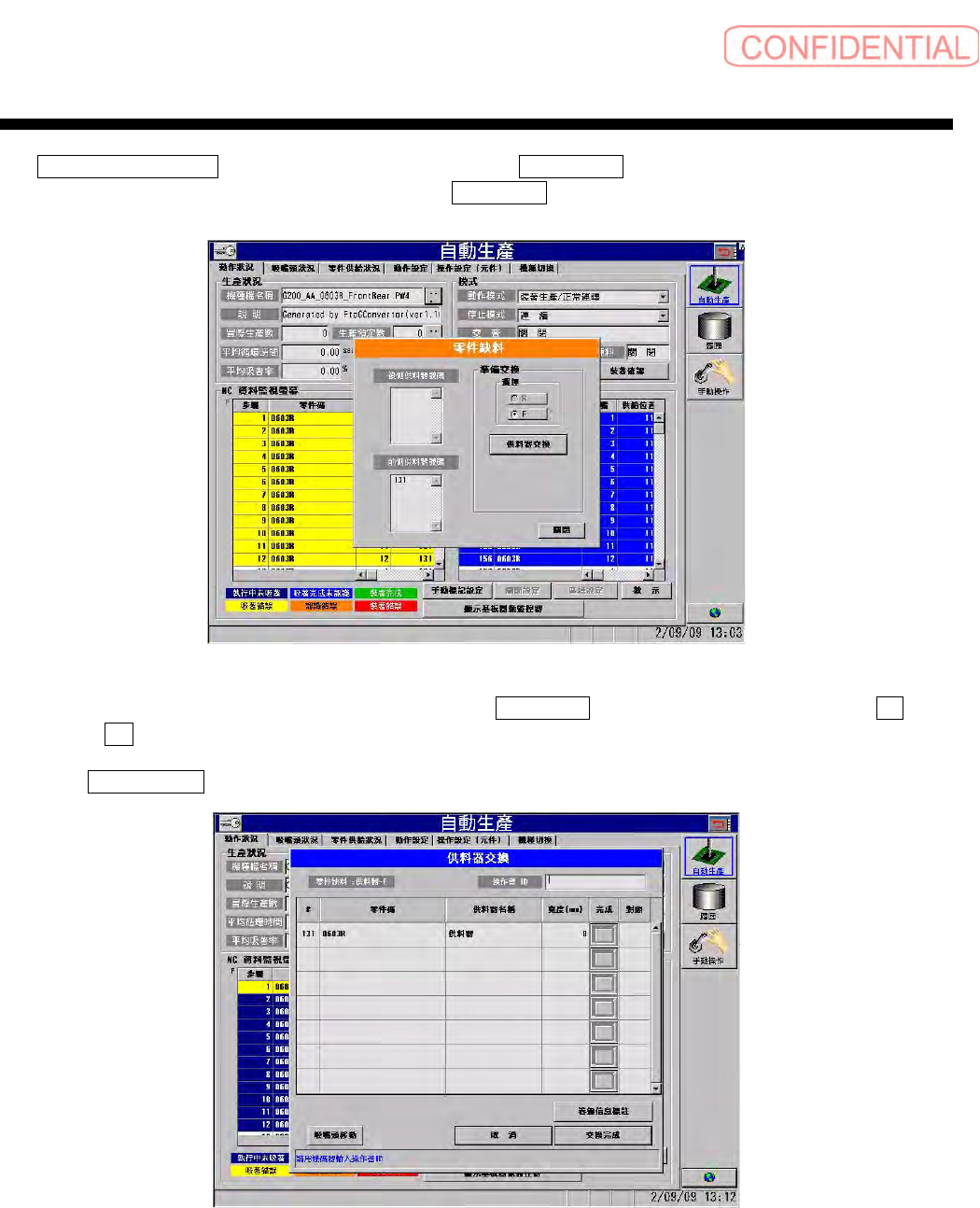 零件缺料同时发生在前侧及后侧的情形时,点击 準備交換 ( 准备交换 ) 框的准备交换的 F ( 前