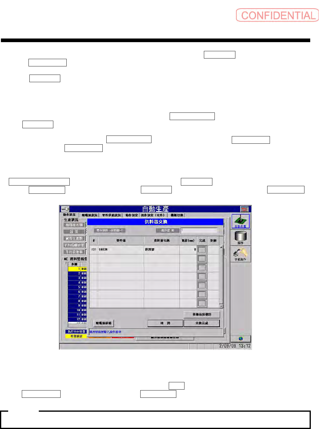 自動生產-供料器交換 (自动生产- 供料器交换)画面