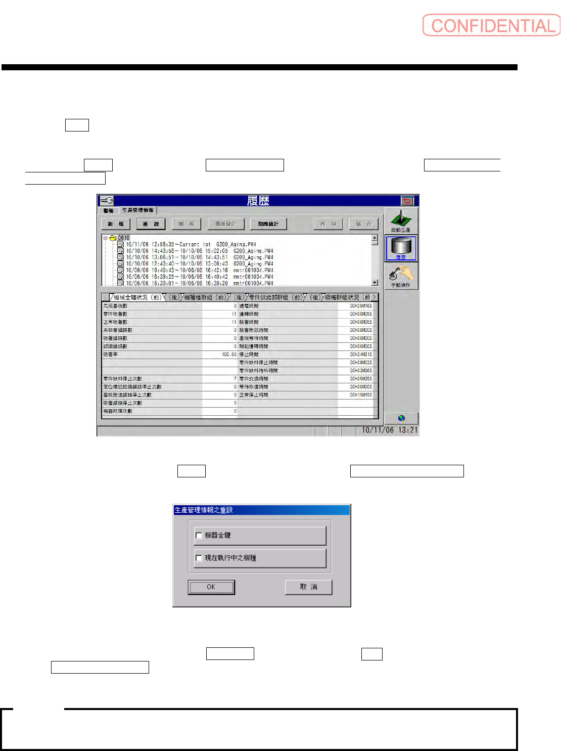 取消 ( 取消 ) 钮,关闭 生產管理情報之重設 ( 生产管理信息的重设 ) 对话框。
