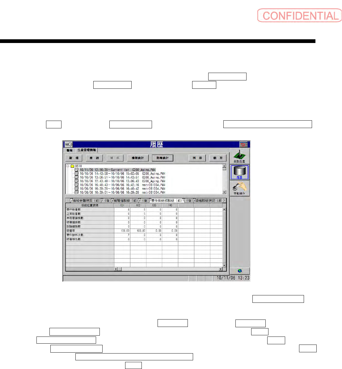 表示零件供给位置的各种错误的状况及吸着率,此表示为附属 檔群組資料 ( 文件群组资料 ) 的