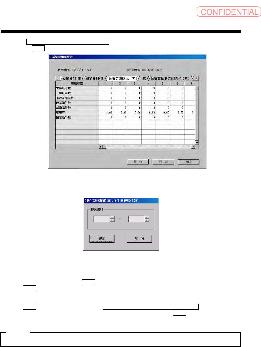 列印 ( 打印 ) 钮 , 会出现上记的 列印 ( 吸嘴部群組狀況生產管理情報 ) ( 打印 ( 吸嘴部