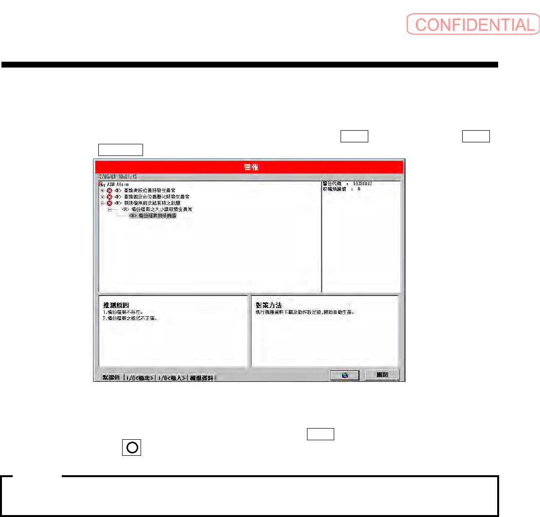 激活、机器资料读取或备份存取发生警报时,点击 警報 ( 警报 ) 对话框的 詳細