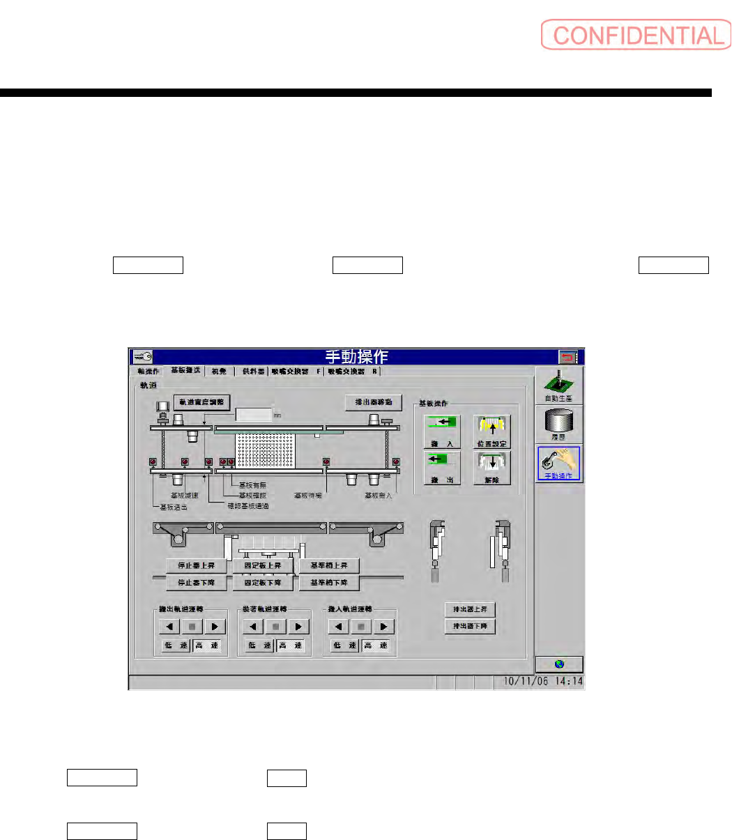 依顺序点击 手動操作 ( 手动操作 ) 菜单 → 基板搬送 ( 基板搬送 ) 标签,会显示以下的 基板搬送