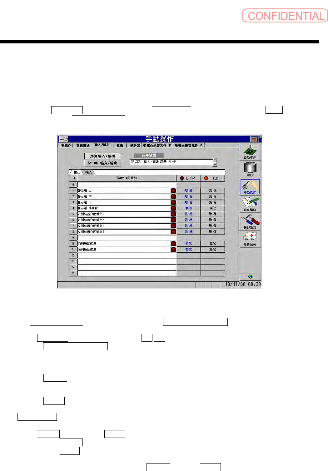 4.3 输入 / 输出信号的显示 (需要管理者以上的使用者层级)
