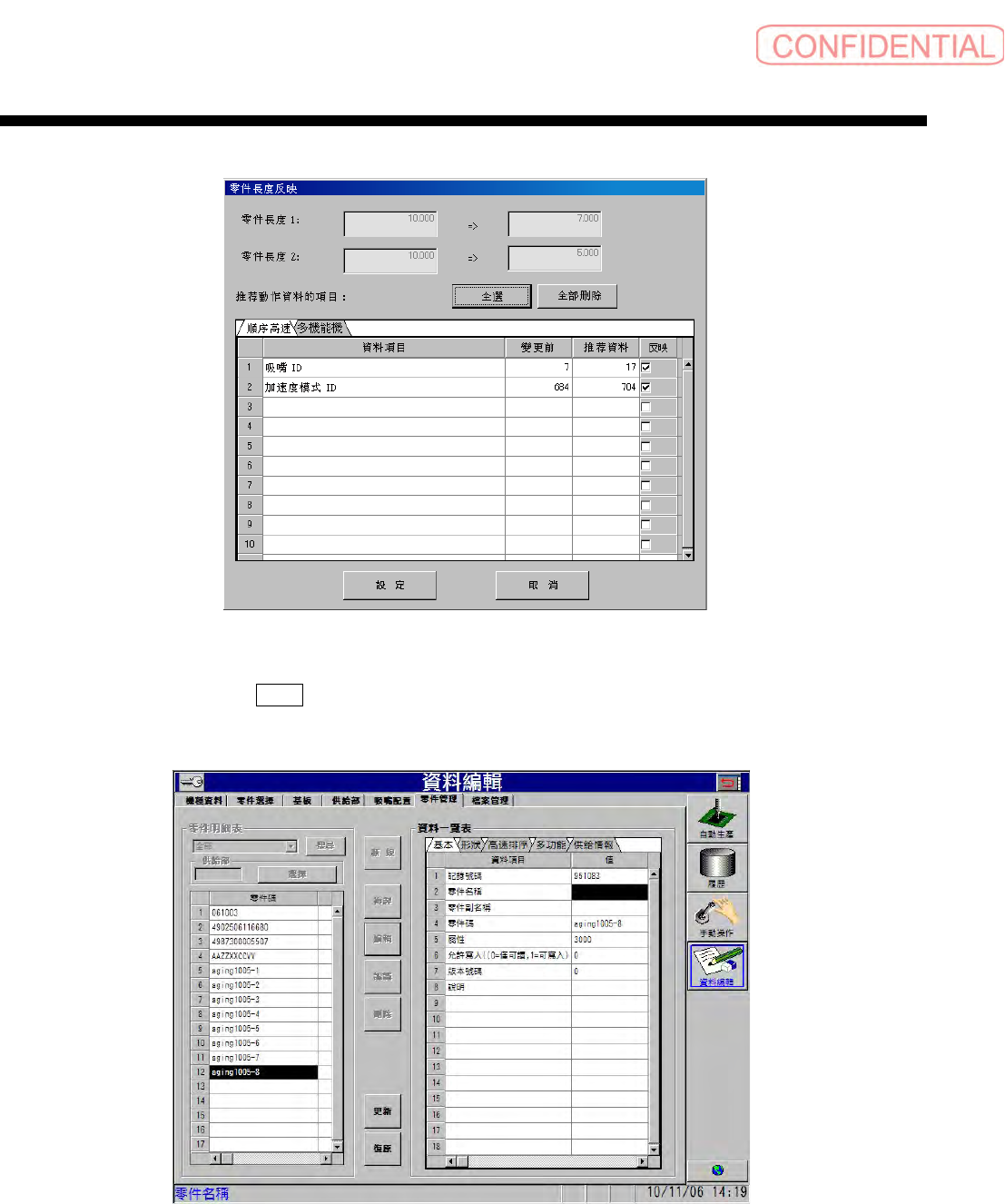 ( 零件长度反映 ) 对话框点击 设定 ( 设定 ) 钮。由于零件长度的变更而对动作资料产生影响,高速