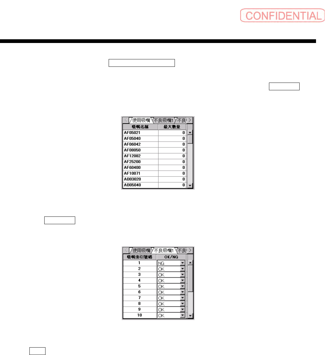 点击指定 不良吸嘴 ( 不良吸嘴 ) 钮时,会表示以下的列表,可设定装着吸嘴位置的 OK/NG。