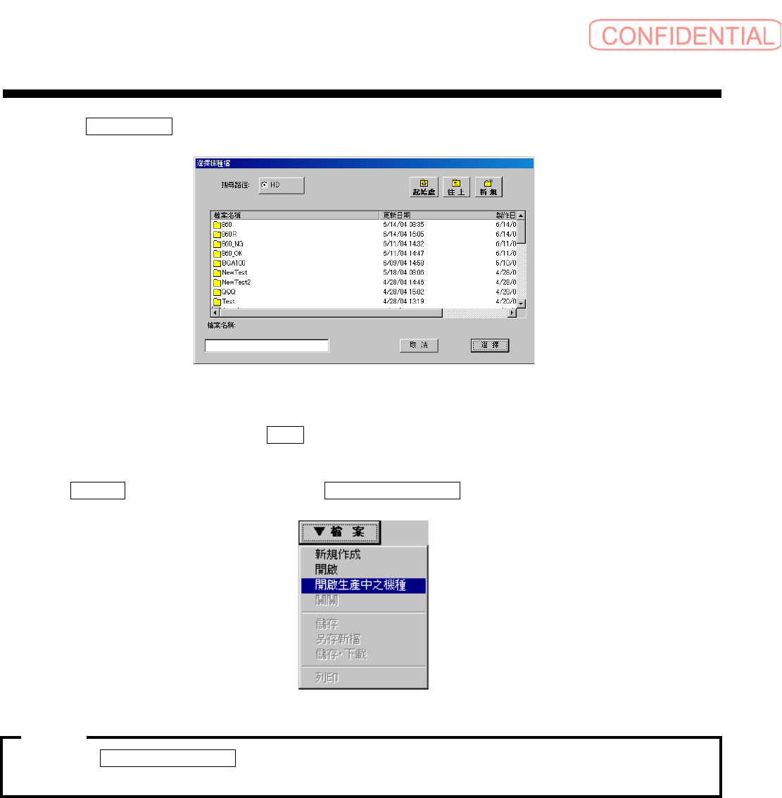 (2) 生产中的机种文件开启的情形