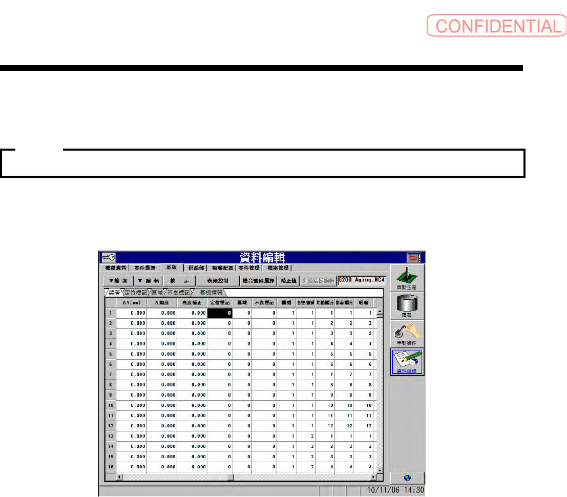 编辑对象选择对话框消失,在画面上表示选择的机台基板资料。