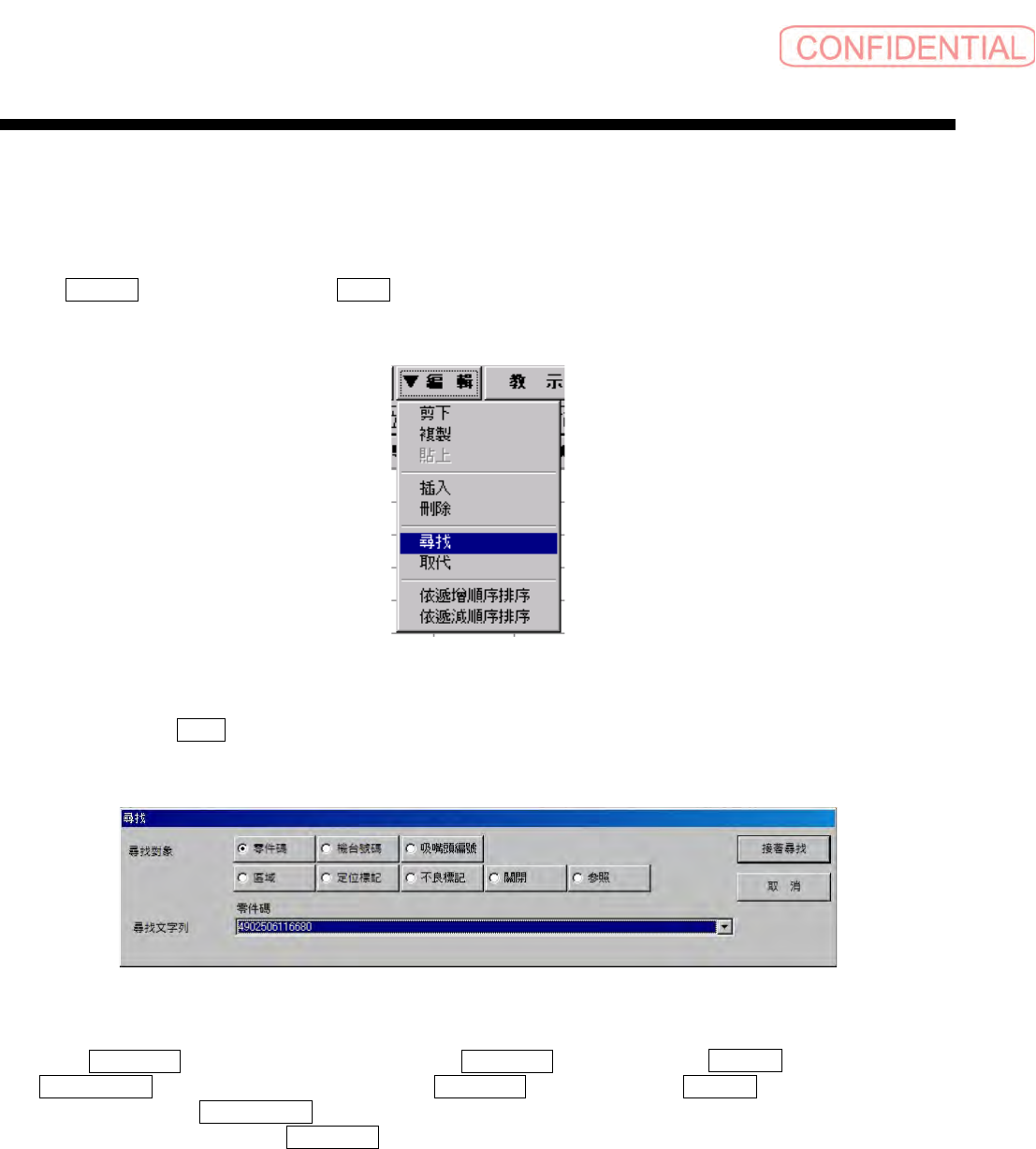 尋找文字列 ( 寻找文字列 ) 以鼠标选择。 尋找對象 ( 寻找对象 ) 为 零件碼 ( 零件码 ) 以外时,