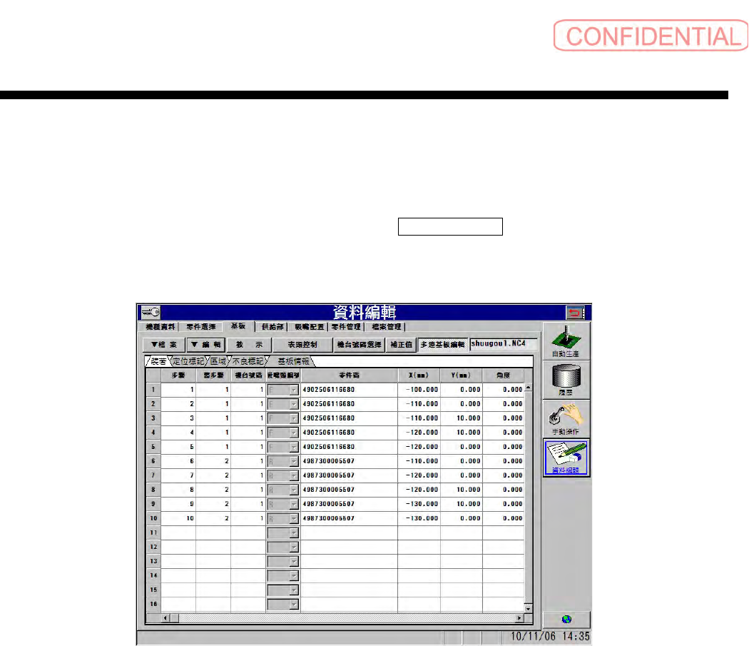 区域被展开,以多连基板被认识的情况下,右上的 多連基板編輯 ( 多连基板编辑 ) 钮为按下的