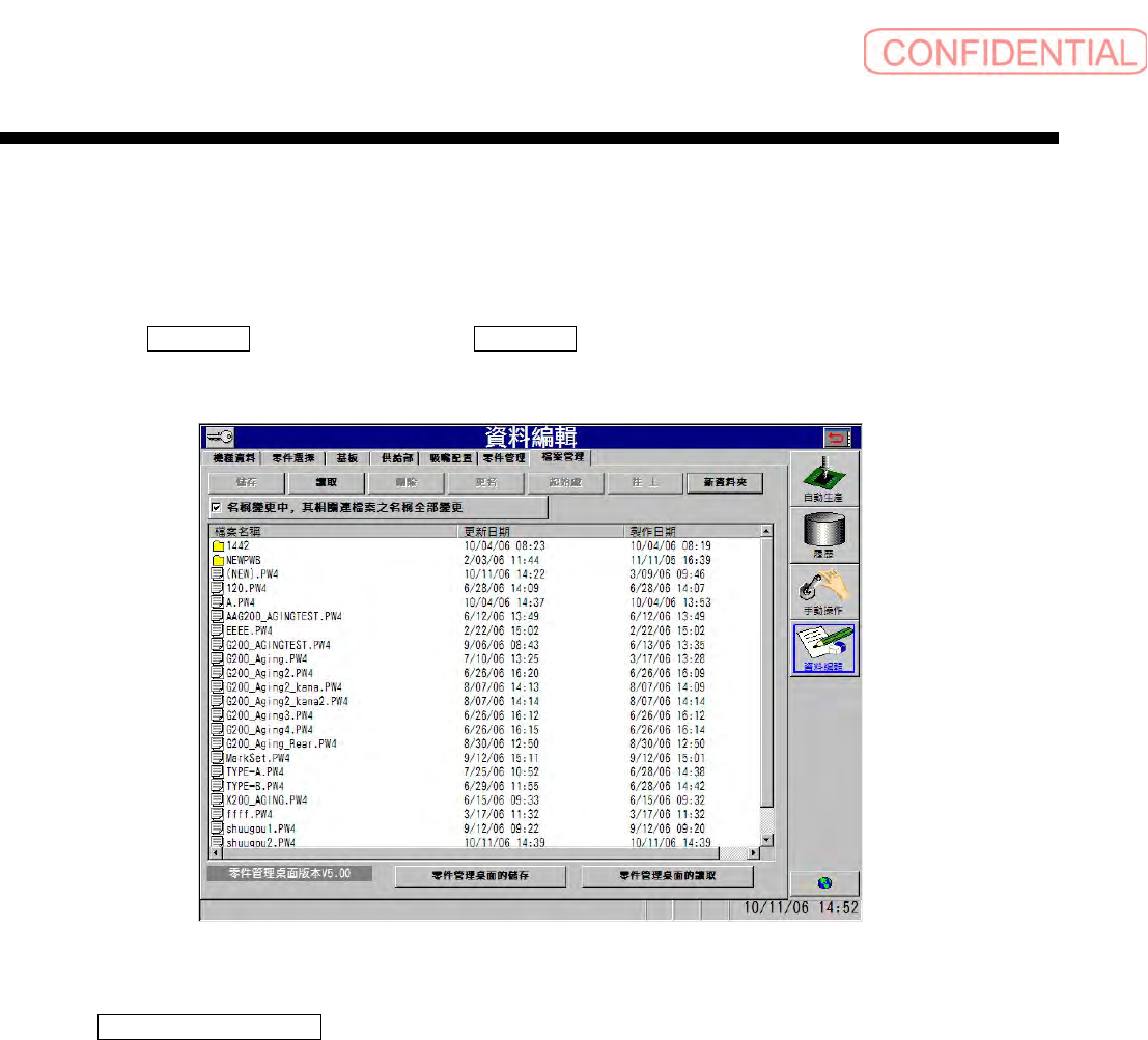 点击指定 資料編輯 ( 资料编辑 ) 菜单的 檔案管理 ( 文件管理 ) ,会出现以下的画面。