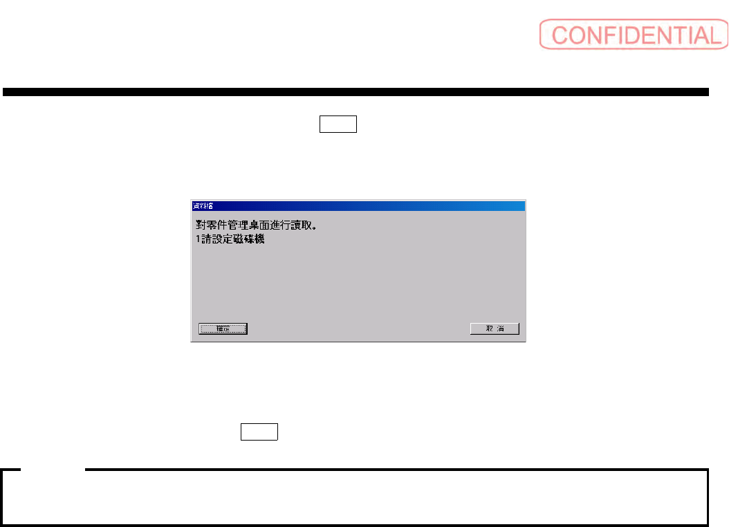 零件管理表读取过程中,会显示 “对读取零件管理表进行读取。”的对话框。请不要在读取中