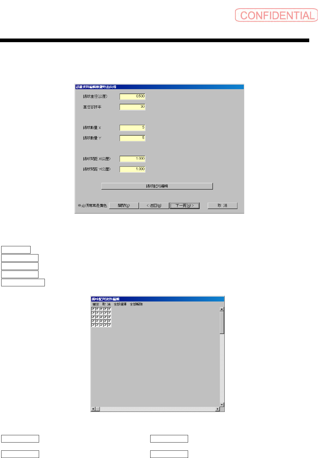 錫球配列編輯 ( 锡球配列编辑 ) :显示锡球配列编辑画面。