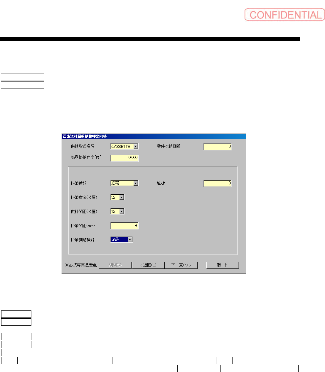 埠號 ( 端口号 ) :有 料帶剝離機能 ( 料带剥离功能 ) - 允許 ( 允许 ) 的时候使用简