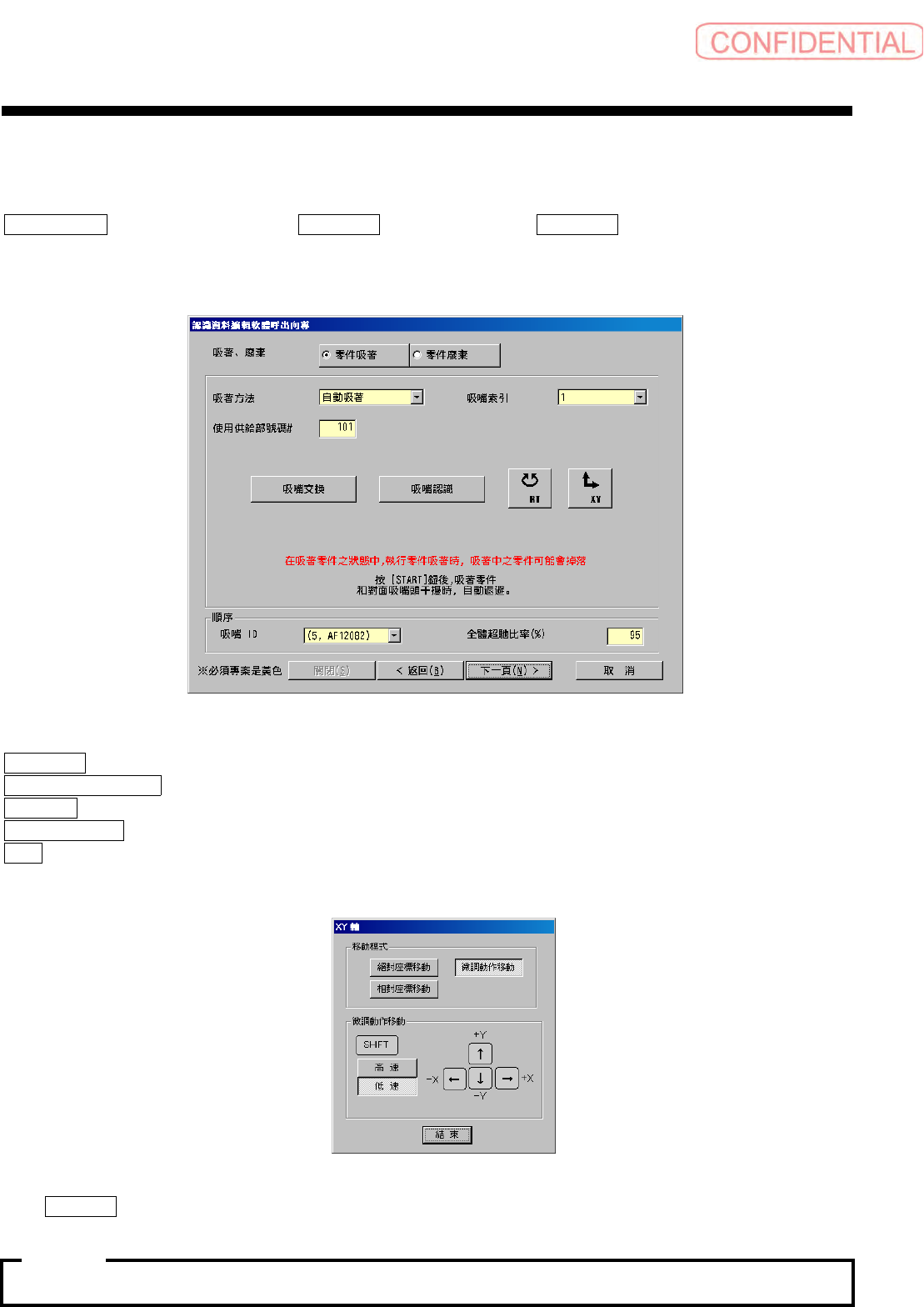 START 钮,将吸嘴移动到手动吸着位置,零件被吸着到吸嘴上。