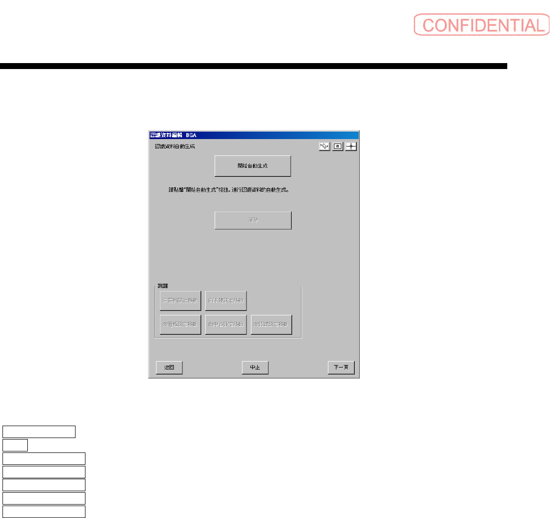 零件认识数据制作篇 1 . 操作 1-20 电子零件装着机 SI-G200Mk3 (CS) 1.3.2 认识数据自动生成画面 芯片零件、异形零件时不显示 。 图 1.3.2 認識資料自動生成 ( 认识数据自动生成 ) 画面 開始自動生成 ( 开始自动生成 ) :从输入的影像开始,进行零件数据的自动生成。 清除 ( 清除 ) :清除被设定零件数据的信息。 向歪斜設定移動 ( 向歪斜设 定移动 ) :向歪斜设定 画面移动。 向本體設定移動 …