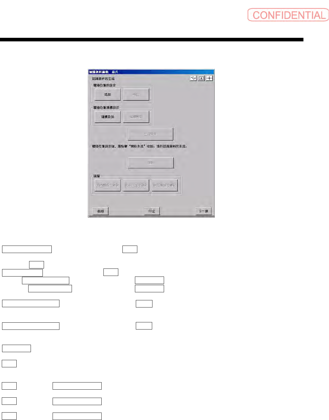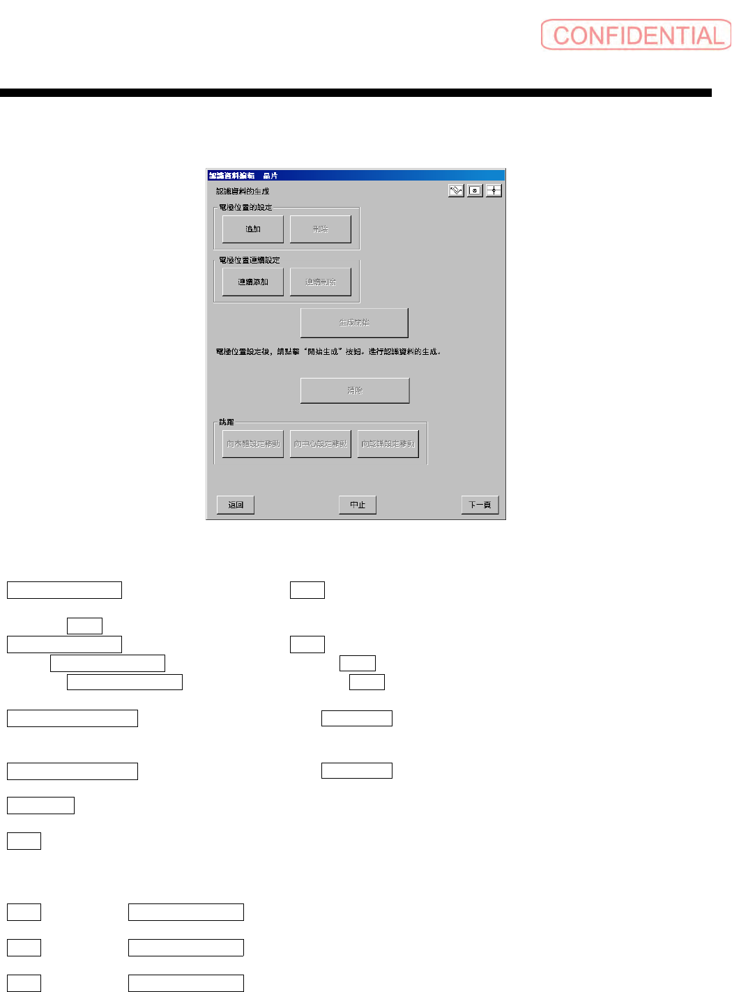 删除追加的电极位置数据,向认识页移动。通过半自动生成,生成数据时有效。