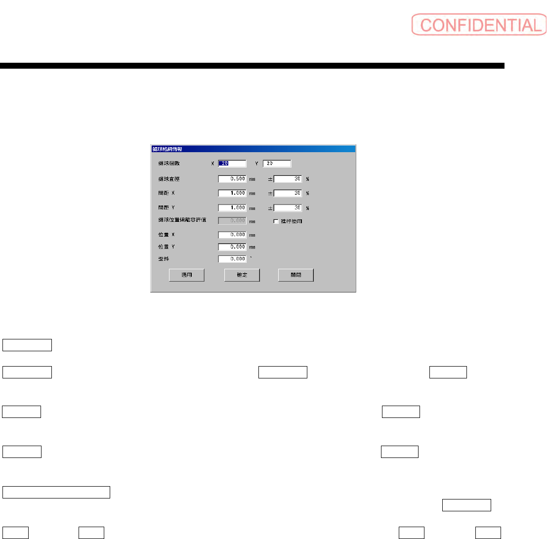 錫球格網 ( 锡球格网 ) - 明細 ( 明细 ) :显示设定画面,设定被选择的锡球格网的信息。