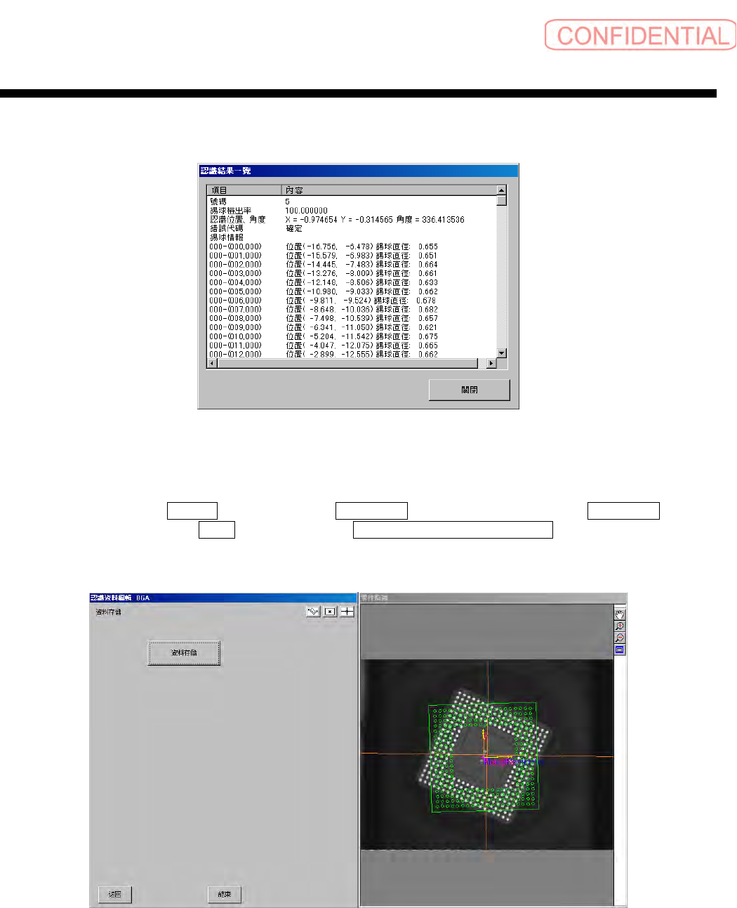 零件认识数据制作篇 2 . 顺序 2-34 电子零件装着机 SI-G200Mk3 (CS) 移动至 認識開始 ( 认识开始 ) 画面 ,按 ST AR T 钮,执行认 识。 图 2.1.5-1 4 認識 ( 认识 ) 设定 画面 认识被执行,如果认识结果处 显示 確認 ( 确认 ) 后,请按 STOP 钮,停止认识处理。 图 2.1.5-1 5 認識 ( 认识 ) 设定后