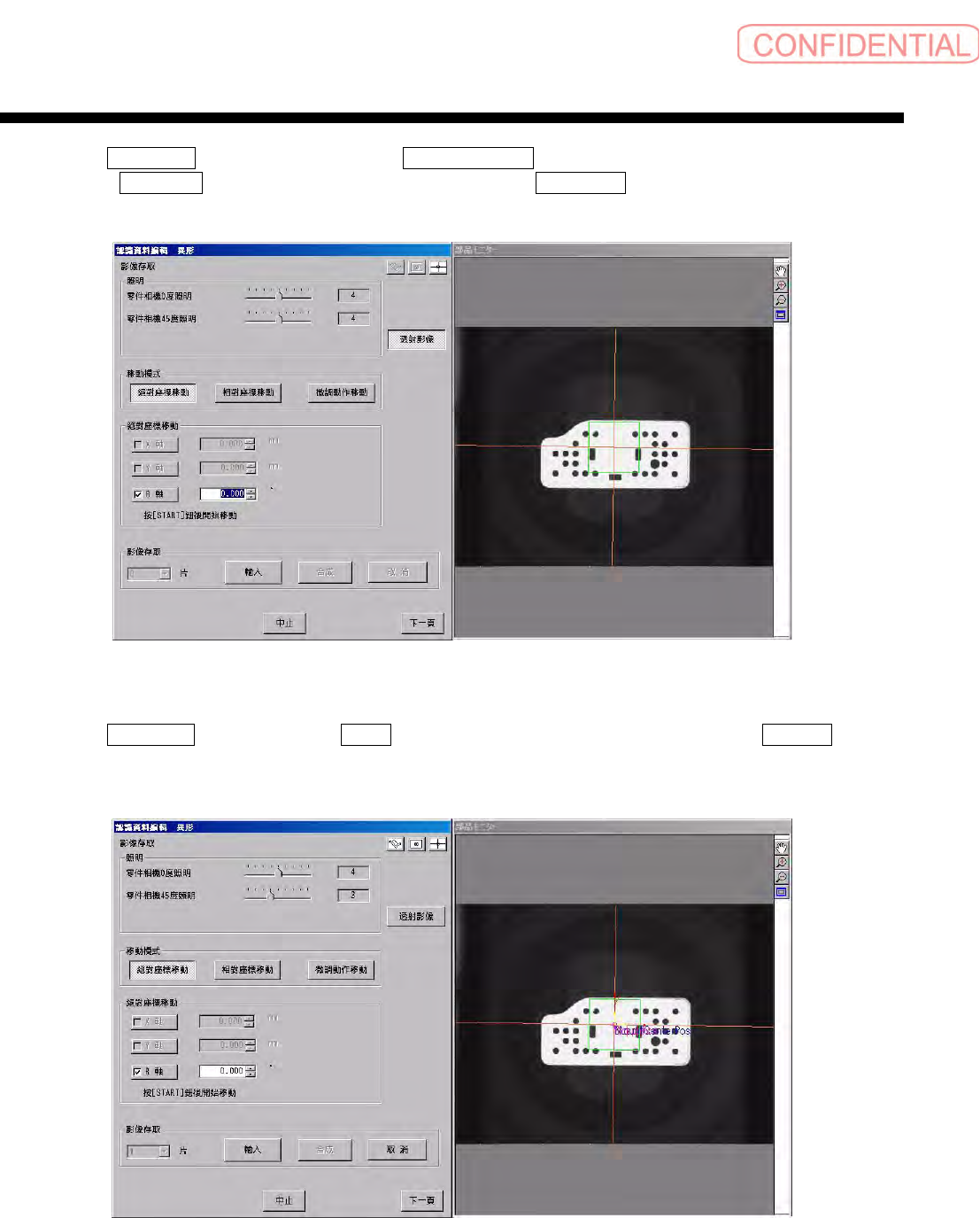 首先,点击 影像存取 ( 影像存取 ) 的 輸入 ( 输入 ) 钮,存取零件的透射影像,点击 下一頁 ( 下一