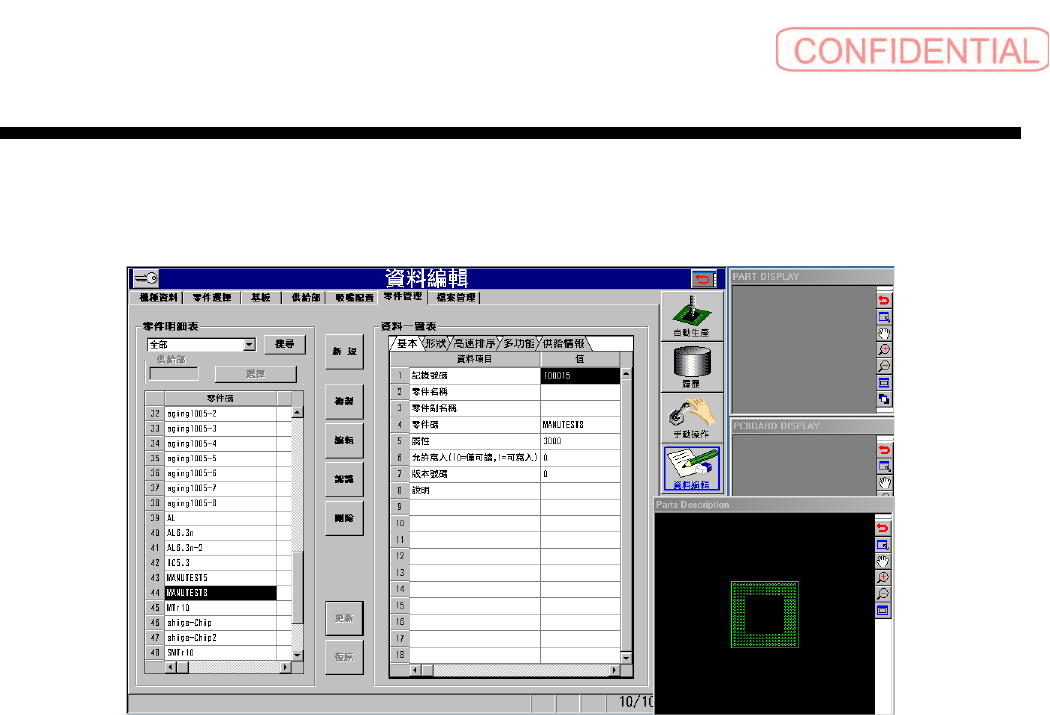返回 零件管理 ( 零件管理 ) 画面,点击 更新 ( 更新 ) 钮,将数据写入零件管理表里。