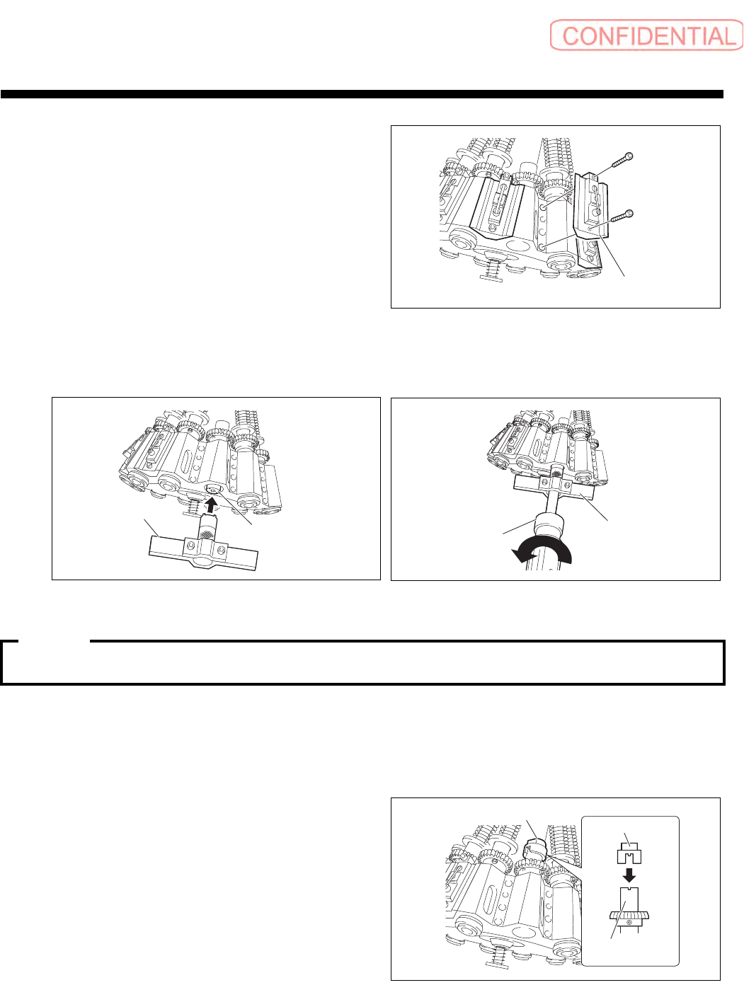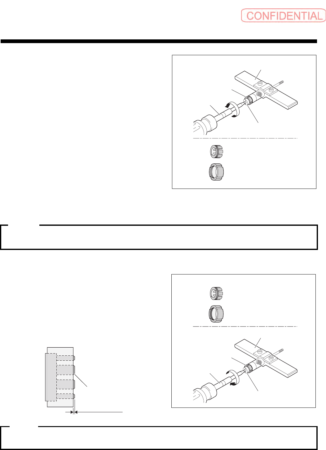 ③ 用手推压轴承托架治具 (2 ),同时从下方看扭矩螺丝刀并向逆时针方向转动,旋松一点