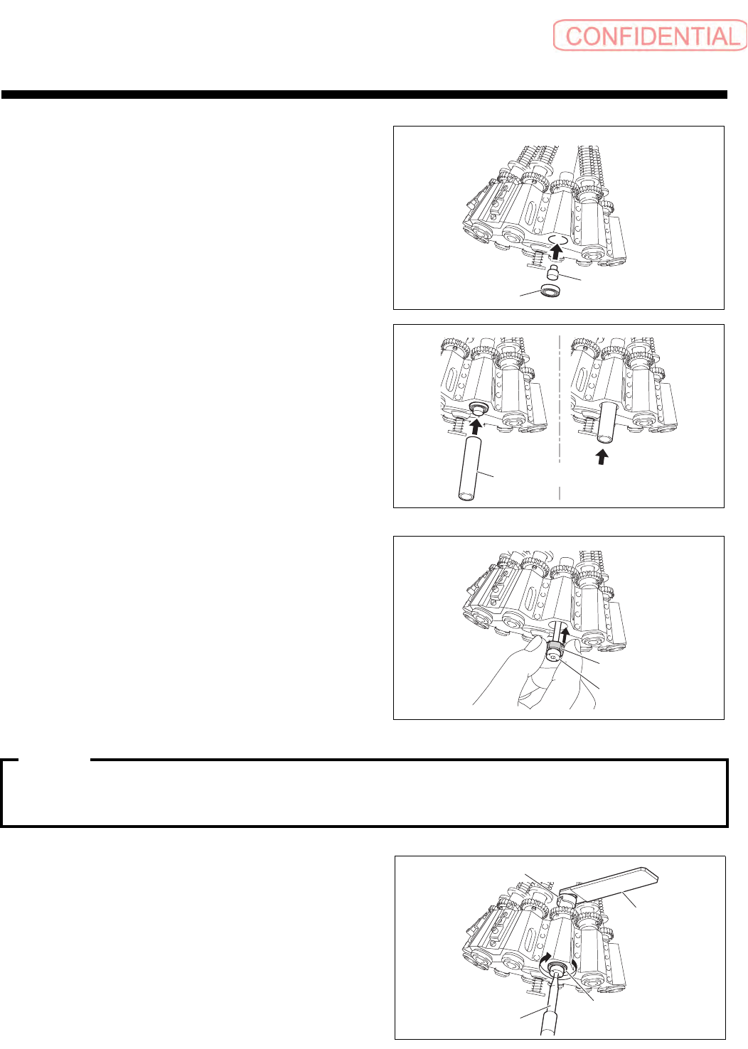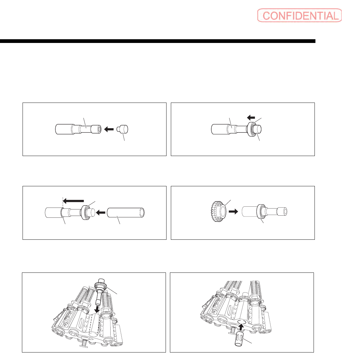 ② 用手推压轴承托架治具 (2 ),同时用扭矩螺丝刀拧紧轴承托架。拧紧扭矩:30cN• m