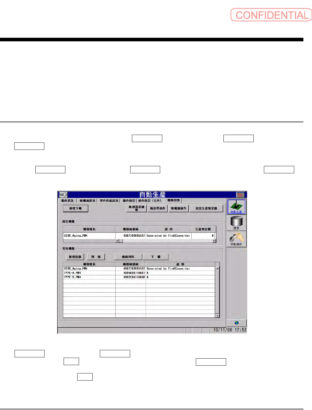 依顺序点击 自動生產 ( 自动生产 ) 菜单 → 機種切換 ( 机种切换 ) 标签,会出现以下的 機種切換