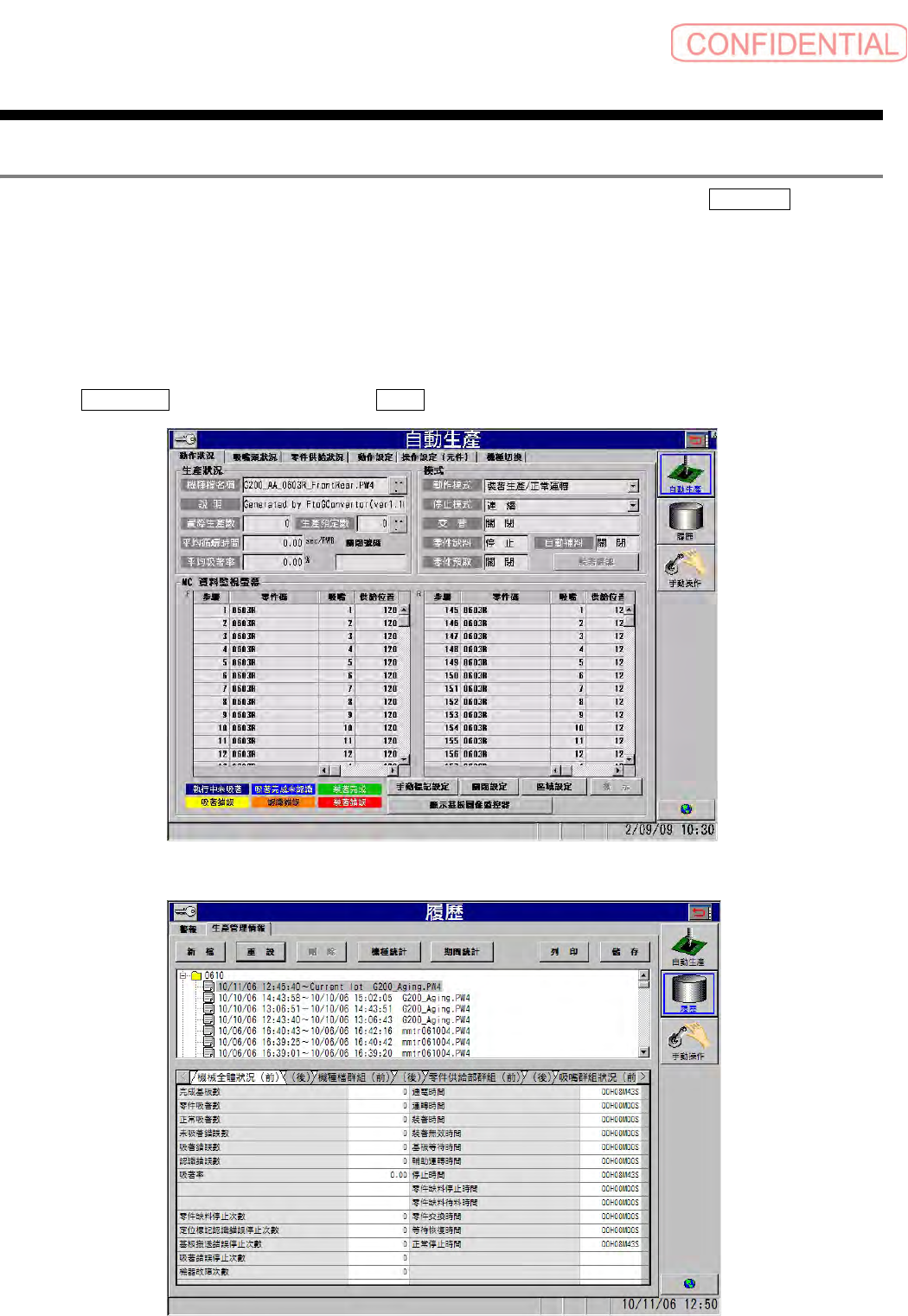 点击 自動生產 ( 自动生产 ) 菜单或者 履歷 ( 日志 ) 菜单。出现以下的一个画面。