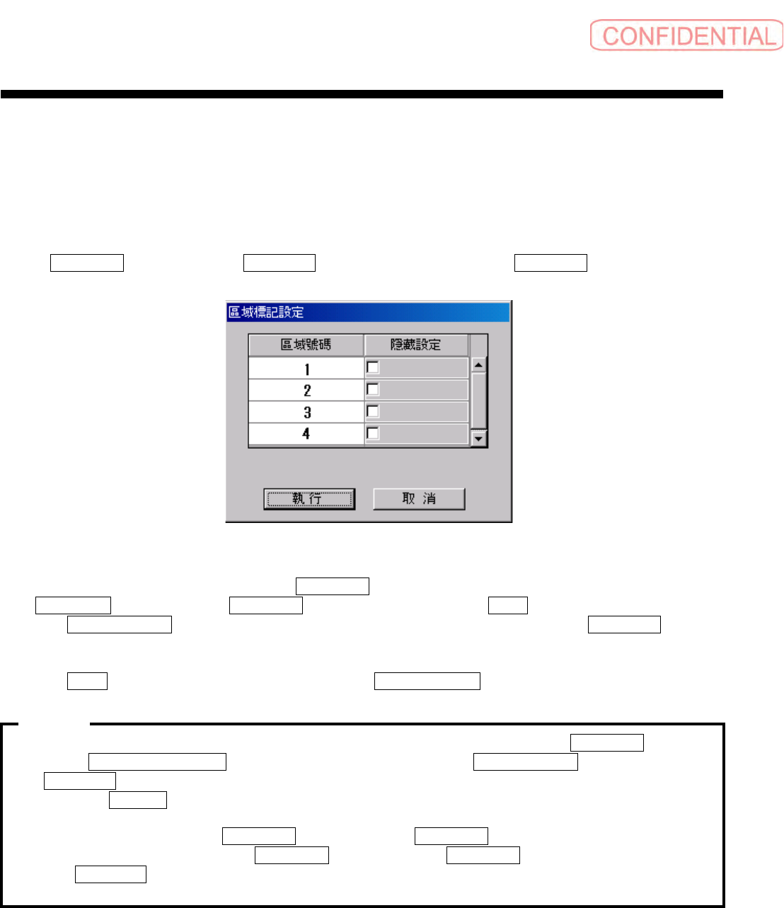 取消 ( 取消 ) 时,不设定区域隐藏而关闭 區域標記設定 ( 区域标记设定 ) 对话框。