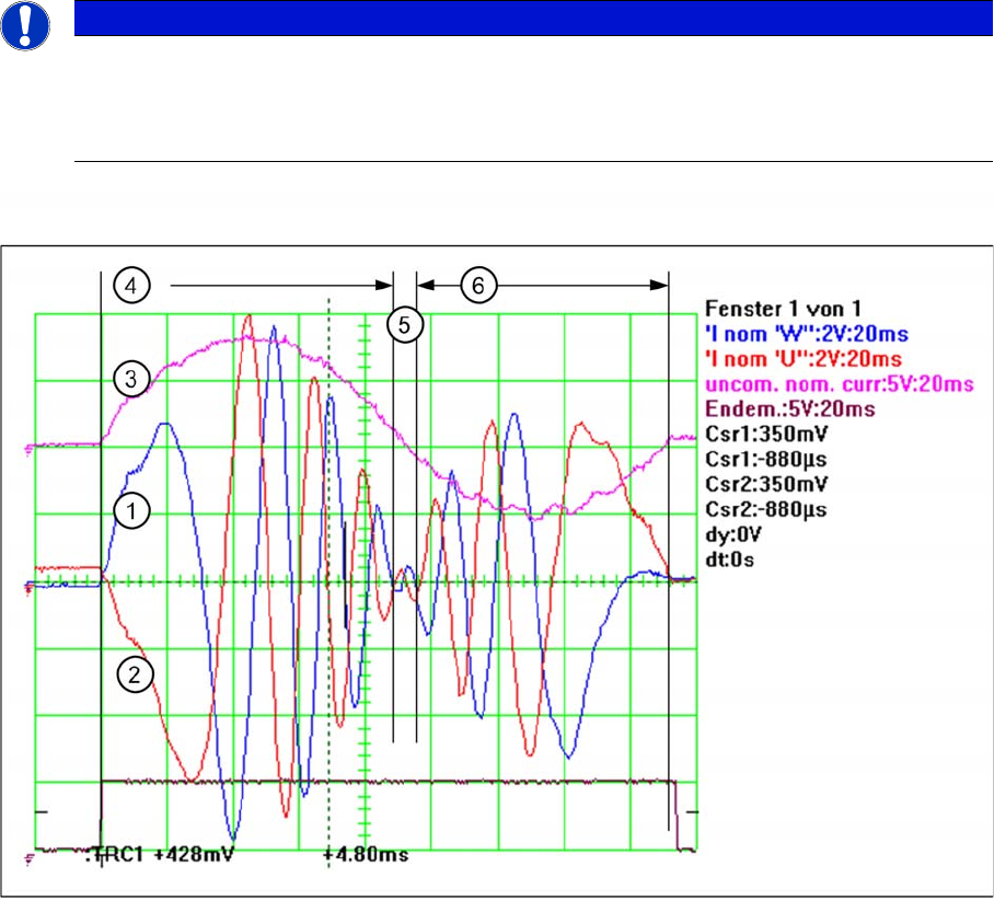 The uncommutated motor current nominal signal (3) and the motor current signals (1) (2) of an AC Motor