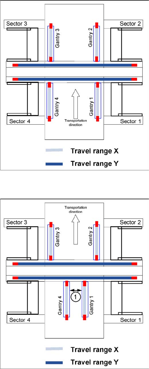 2. In placement areas 1 and 2 of the D4/D4i, gantry 1/2
