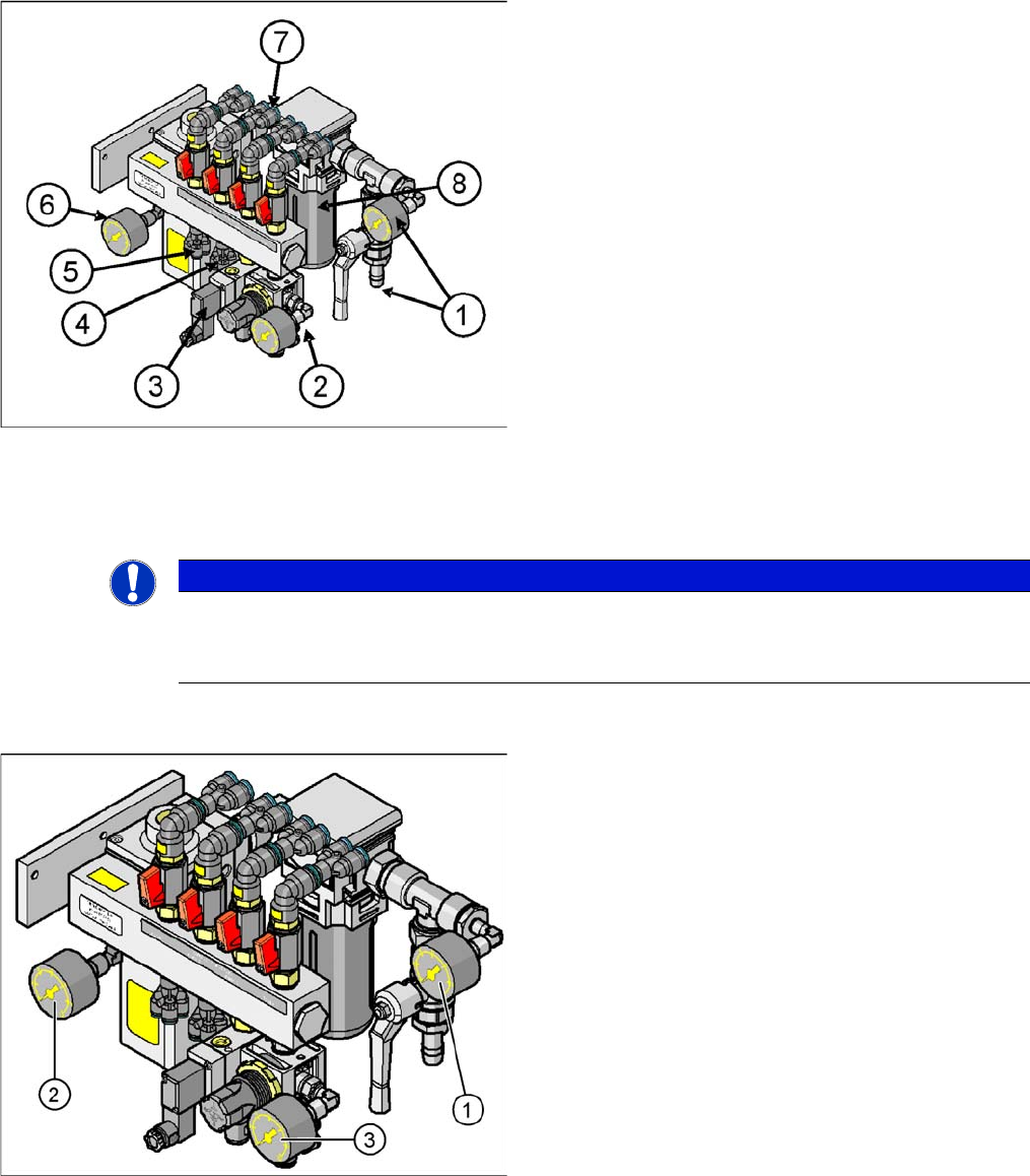 2. Manometer regulated supply pressure 5.0 +0.1 bar