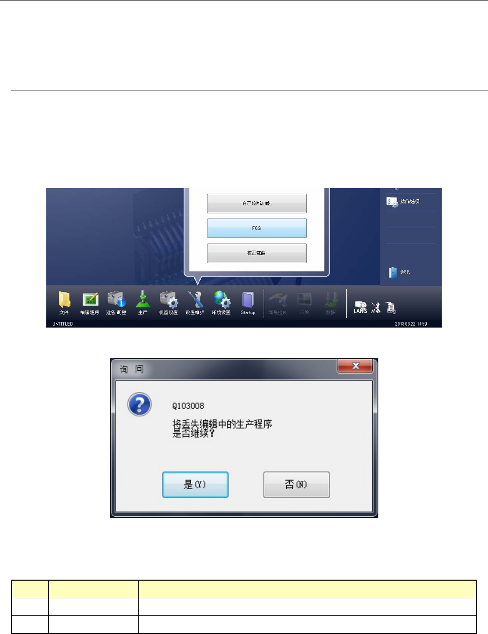 是 不保存已打开的生产程序,读入FCS用生产程序。