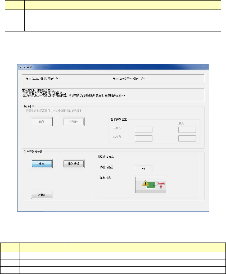 生产开始前处理 在生产开始时,选择[重夹] 或 [搬入基板]。