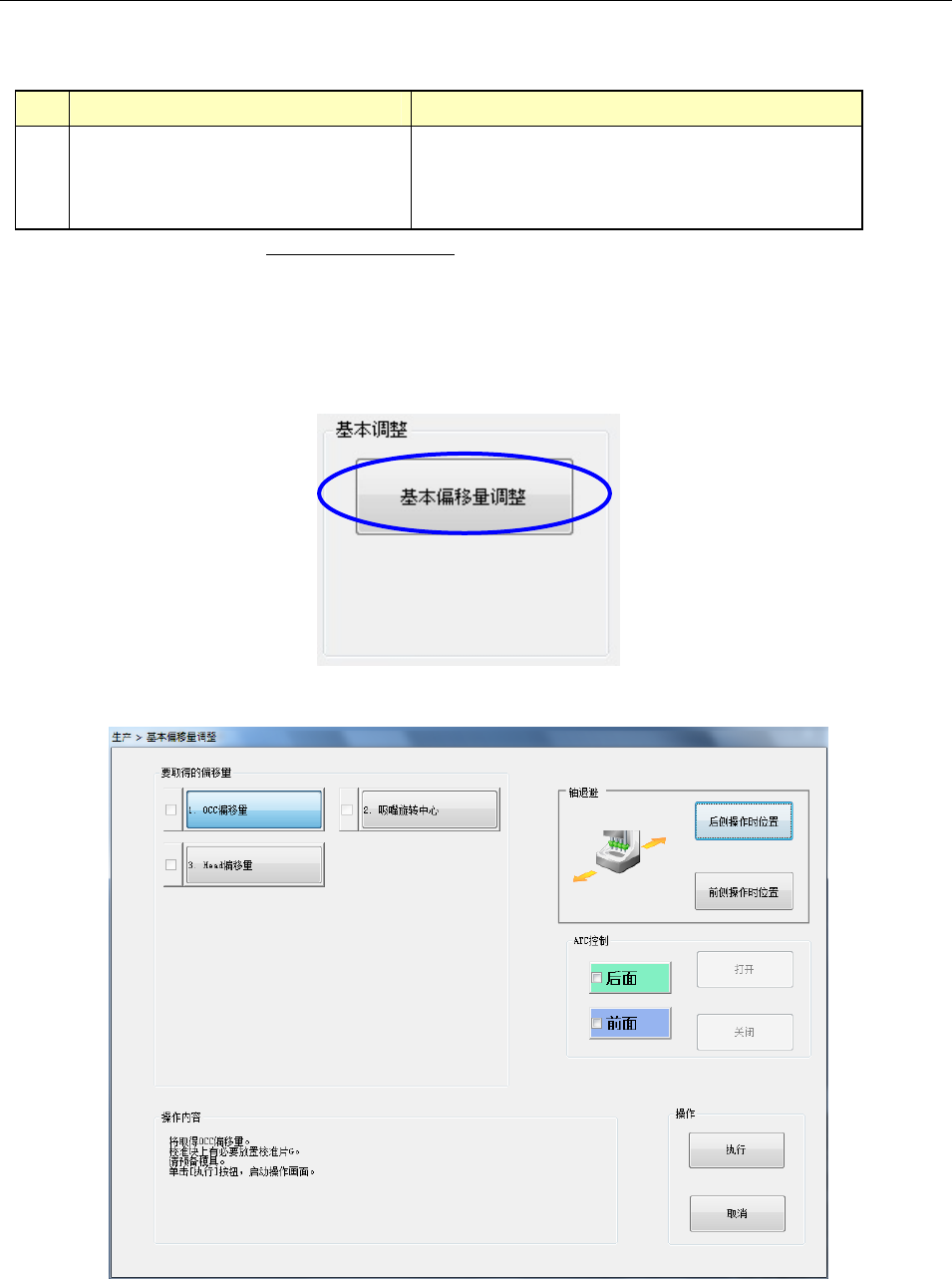 ① 通过[基本偏移量调整]重新取得OCC偏移量以后的各种参数。