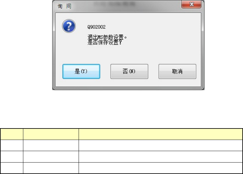 FCS 使用说明书 ( 7 ) 关于测量数据的保存 以确定键结束各种偏移量取得的对话框时,测量值被临时保存。 当结束 [ 基本偏移量调整 ] 画面,并在 [FCS 设置 ] 画面结束时点击保存按钮,保存才完成(写入 MS 参数控制文件)。 如选择 [ 否 ] ,设置值变为无效。 图 3-6 保存设置确认用对话框 表 3-4 保存设置确认用对话框项目 No. 按钮选择 处理 1 是 保存设置值后回到桌面画面。 2 否 不保存设置值即回到桌…