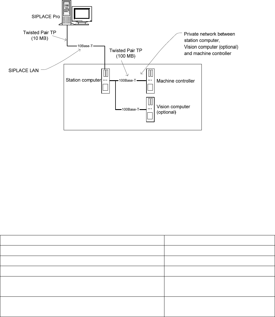 Installation Manual, Station Software Version 603.01 SP1 Issue 03/2007 3.4 Network configuration Fig. 3-4: Network connections between the machine and SIPLACE Pro A separate private network (100 Mbit) is set up betw een …