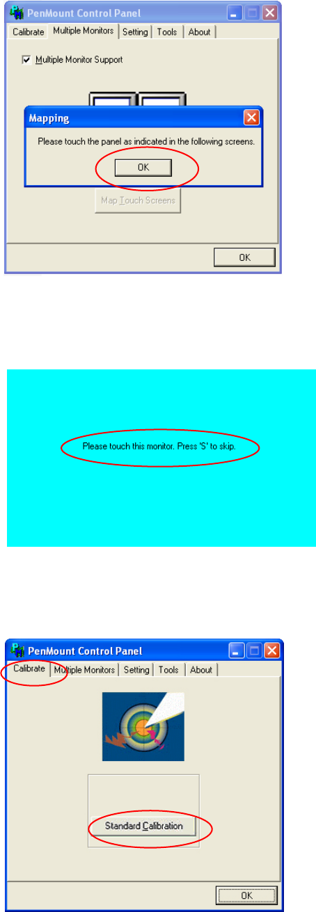 → Touch the monitor showing Please touch this monitor with your finger.