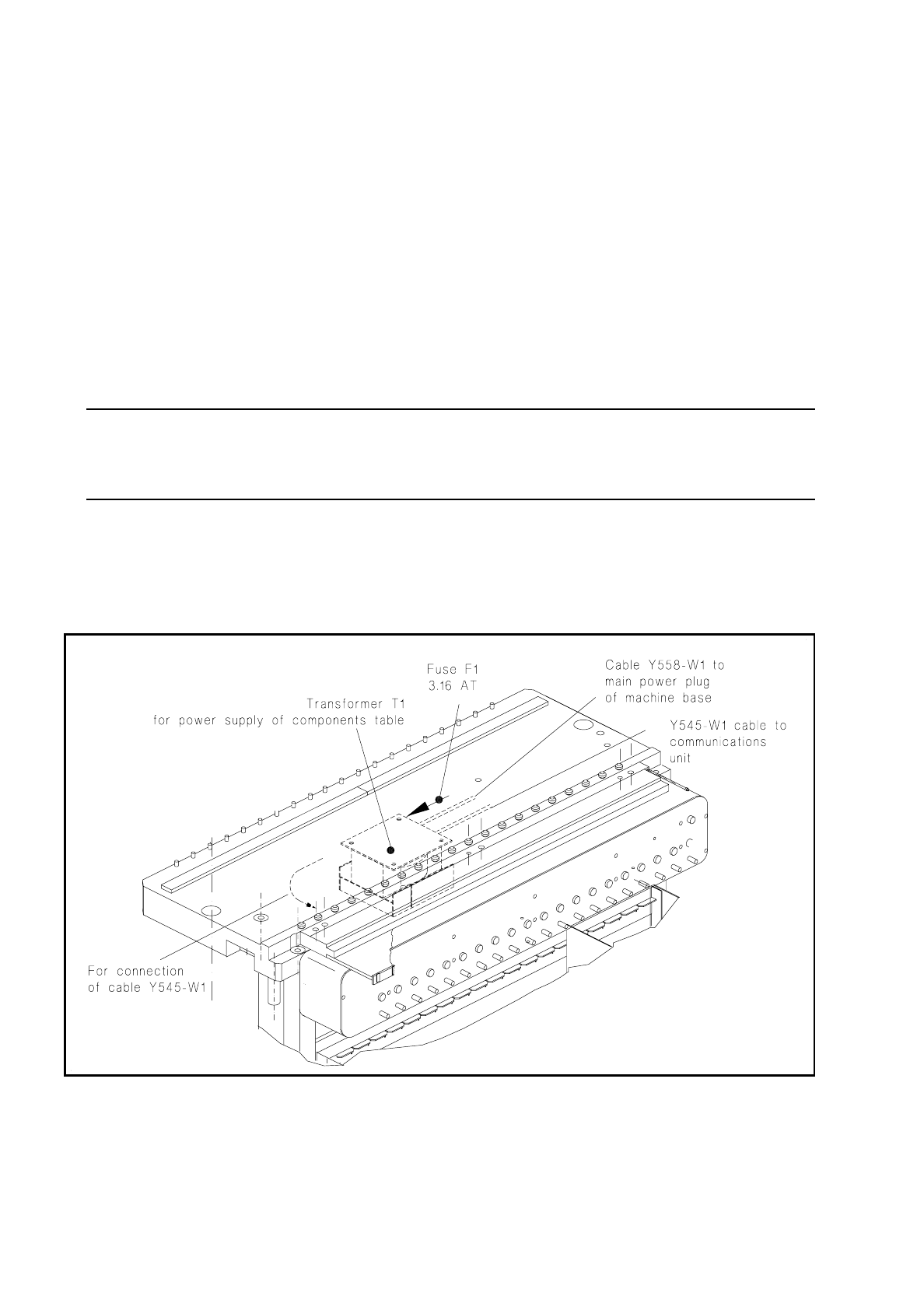 Please note with all work in the machine base interior and in particular on the components table power supply