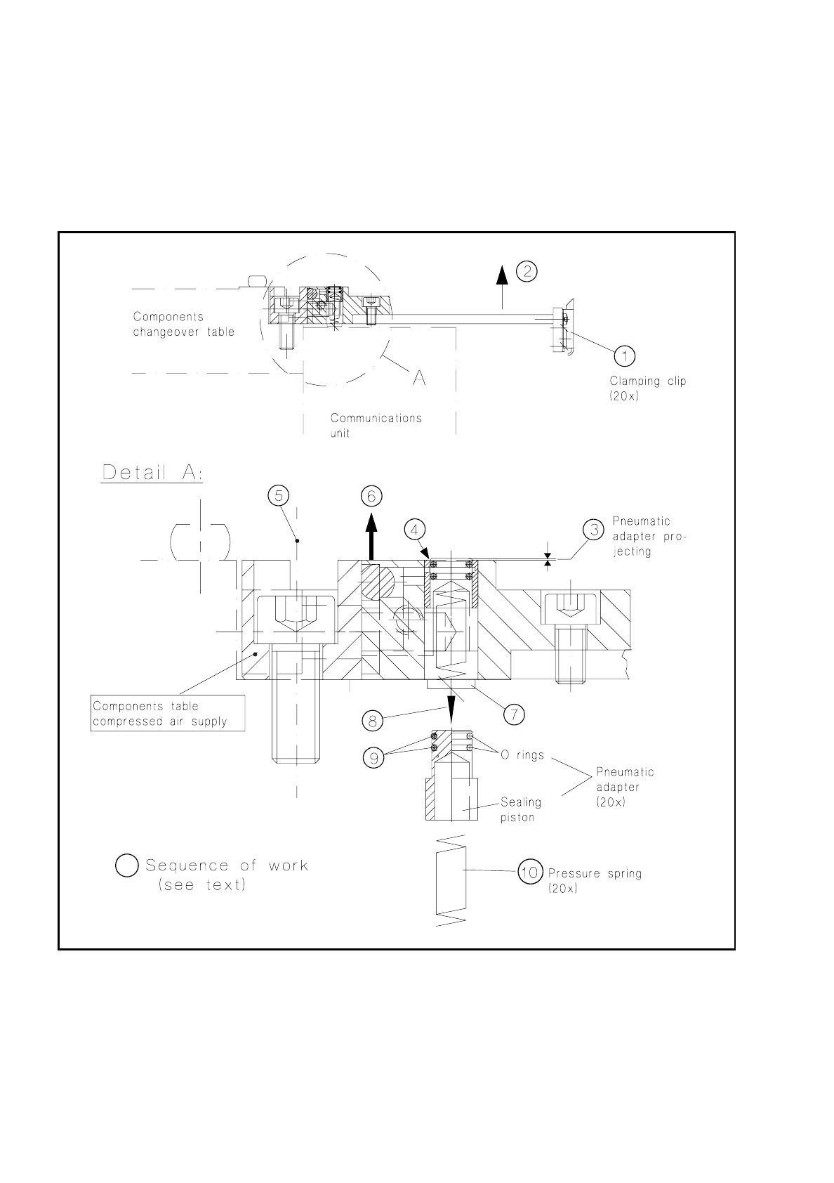 Fig. 7.7.2 Components table compressed air supply: checking and replacing o-rings and pressure springs of the pneumatic adapters