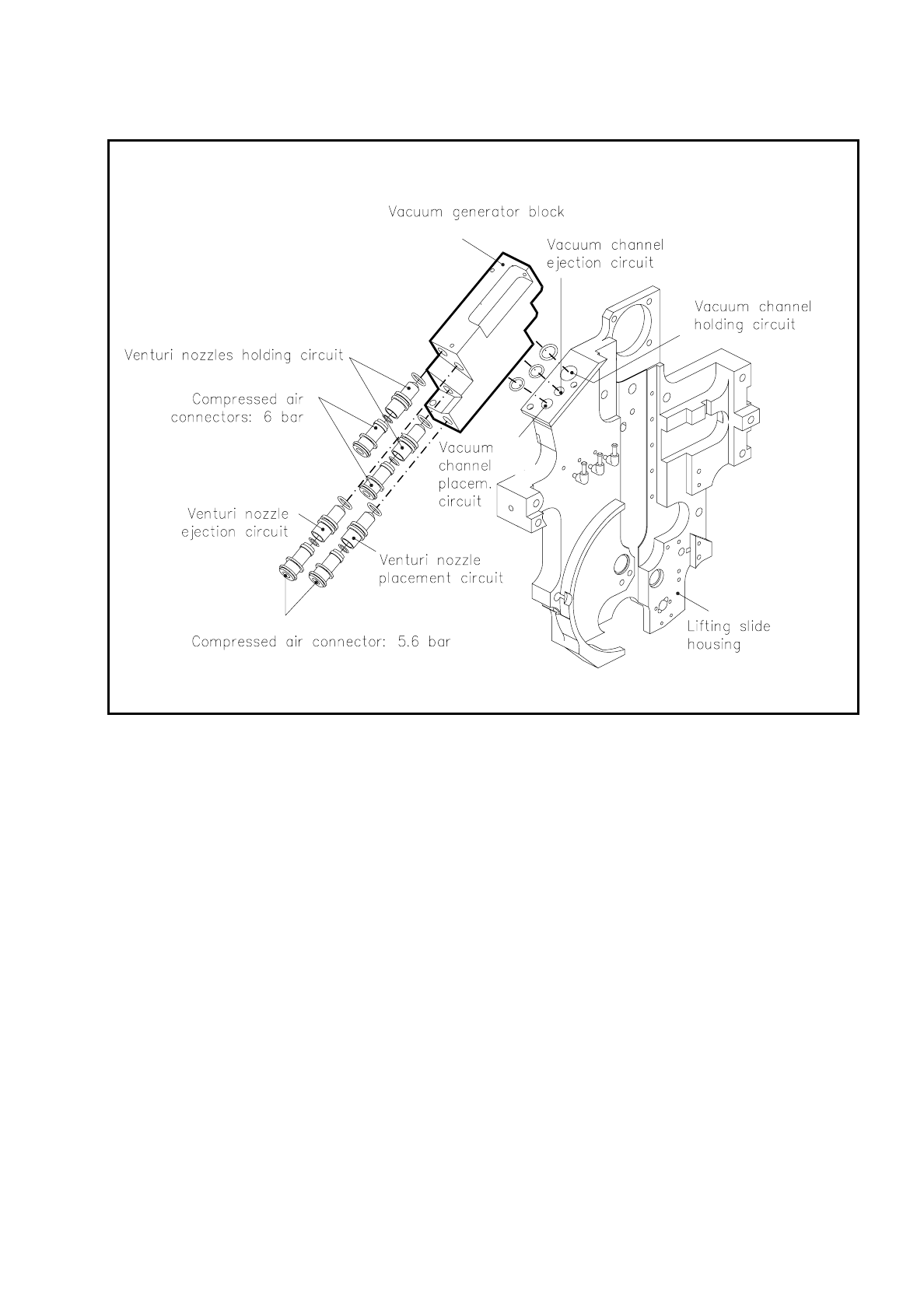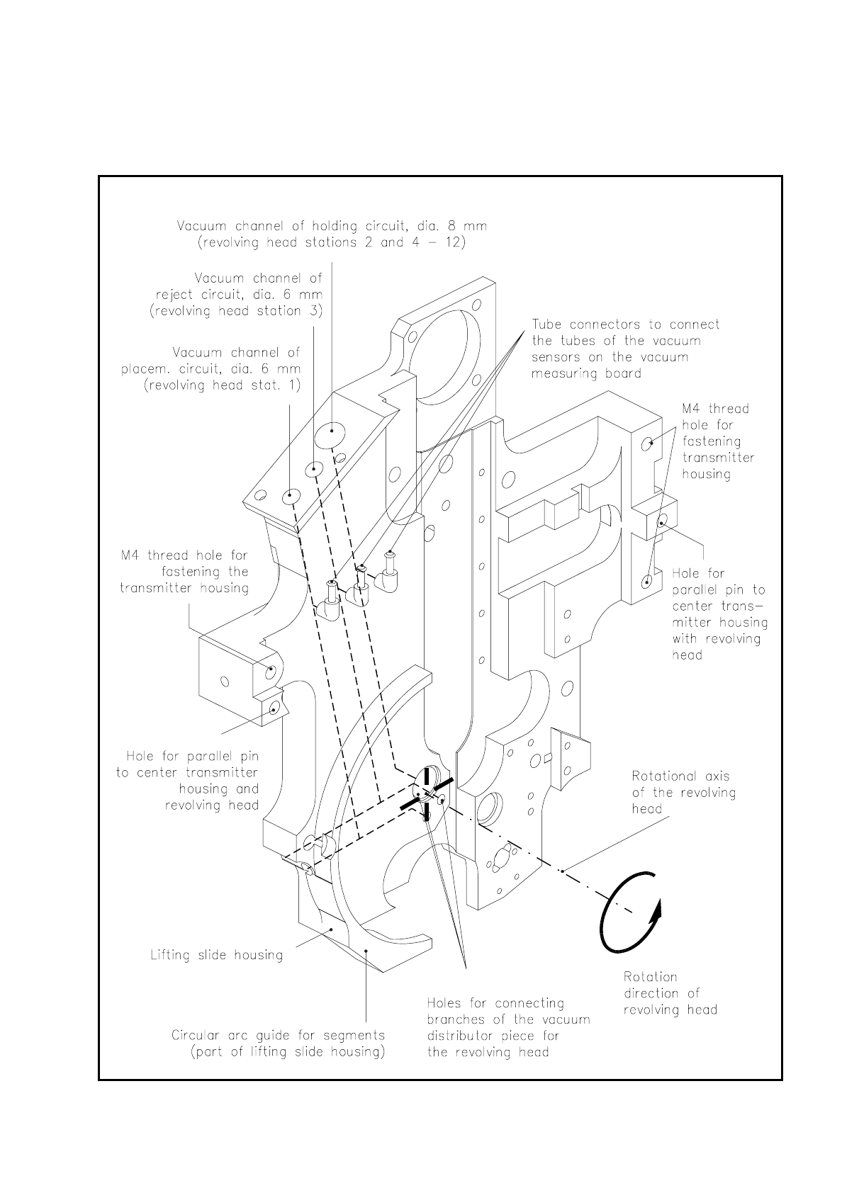 Fig. 9.5.2 shows the structure of the lifting slide housing. The vacuum ducts for the placement, holding and